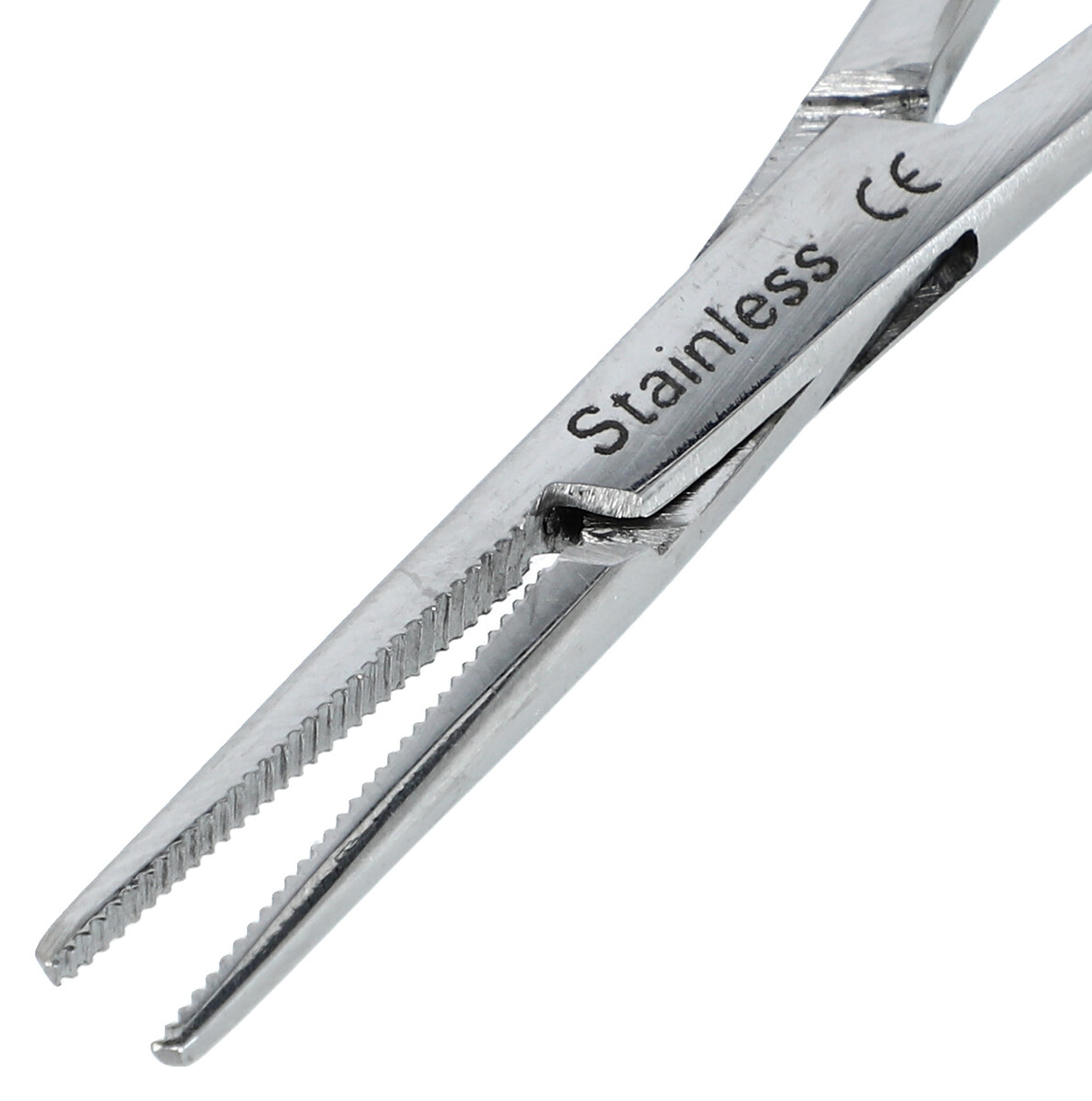 Rovná svorka z nehrdzavejúcej ocele na použitie pri operačných výkonoch.