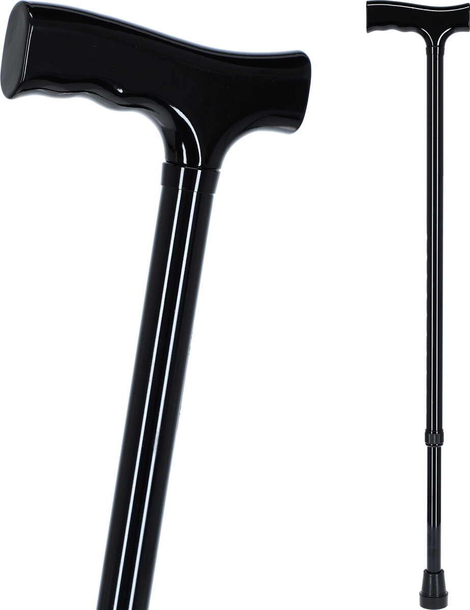 Elegáns, fekete, állítható magasságú sétapálca, a járás biztonságára szolgál. Alumíniumból készült, könnyű és tartós. A fogantyú kényelmes, fából készült és érintésre kényelmes. A járóbot gumi a bot végén csúszásmentes és biztonságos, használata csendes.