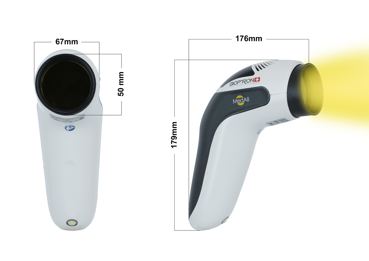 A továbbfejlesztett Bioptron MedAll fullerén szűrővel ellátott biolámpa az egész test hatékony és kényelmes kezelését biztosítja bárhol és bármikor. Kompakt méreteinek, ergonomikus kialakításának és 5 cm átmérőjű szűrőjének köszönhetően jótékony fényterápiát végezhet otthon és útközben is.
