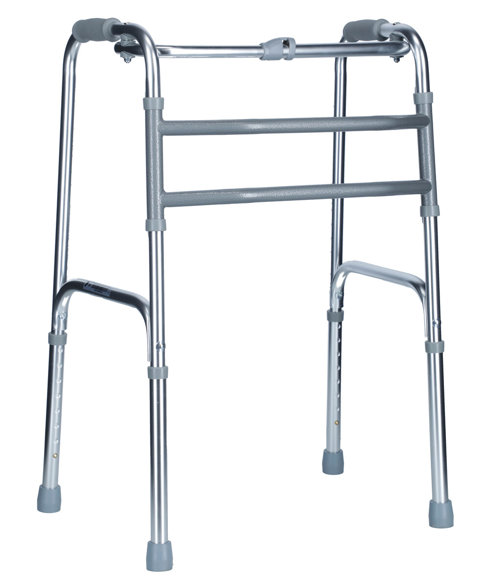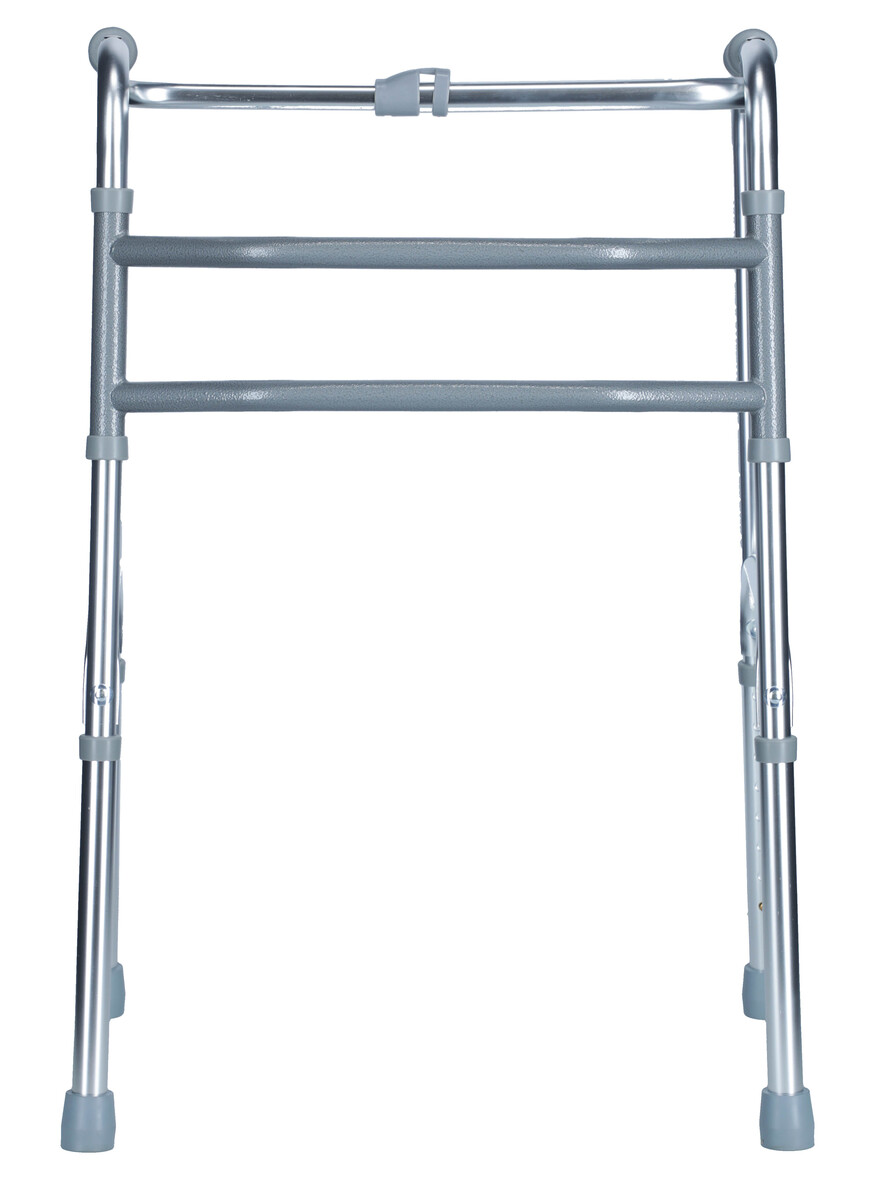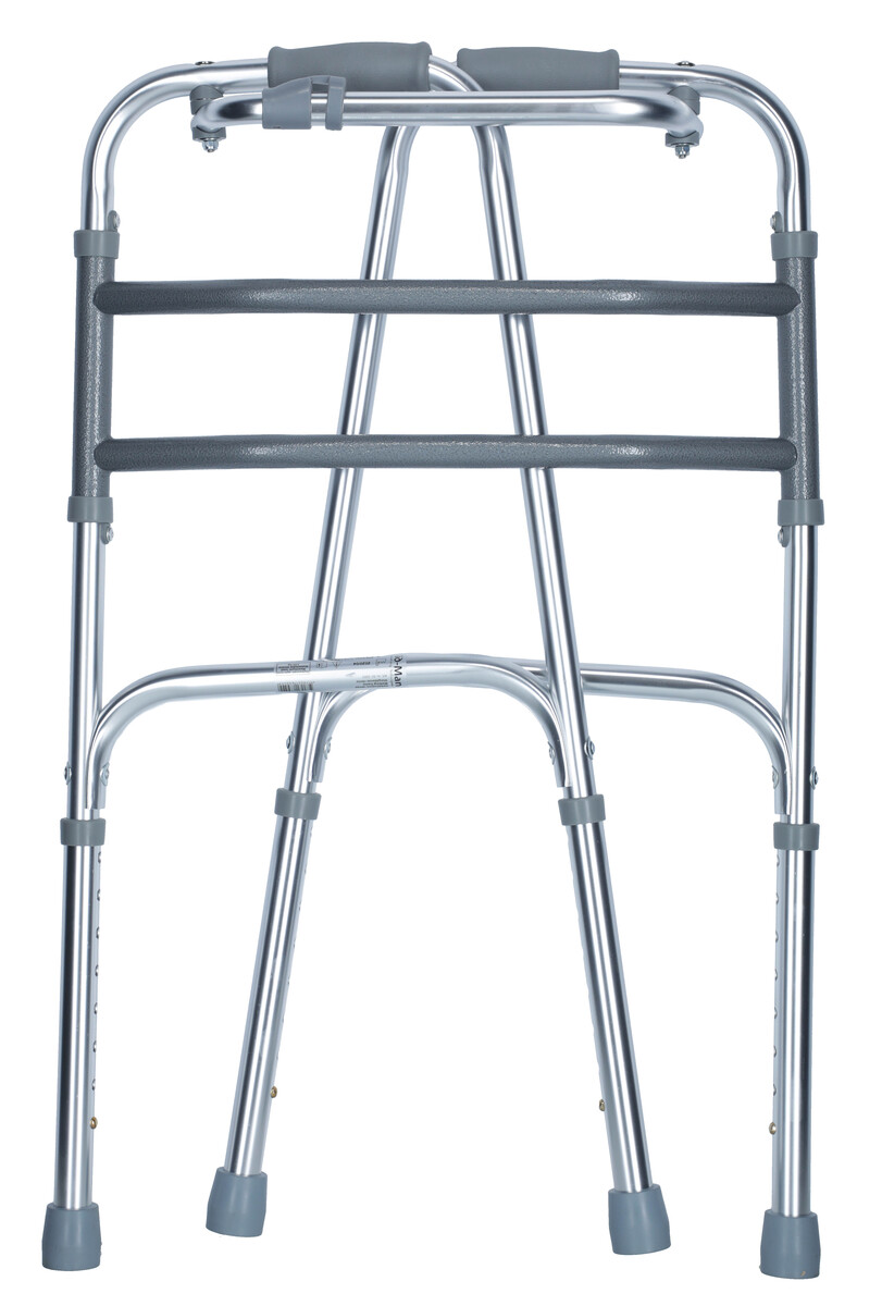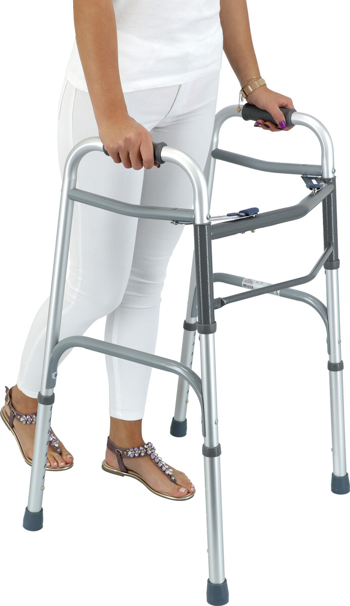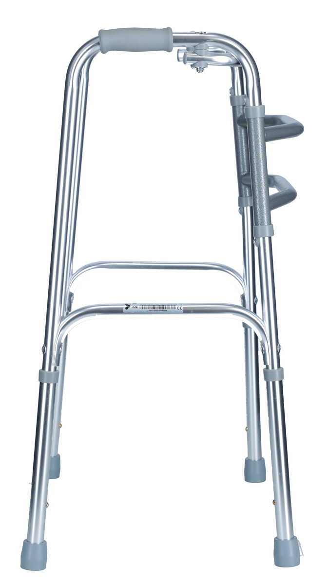 A masszív, összecsukható járókeret ideális választás mindazok számára, akiknek járás közben stabil támaszra van szükségük. Könnyű, mégis tartós, eloxált alumíniumból készült váza biztonságos és gyors mozgást tesz lehetővé. A felhasználó kényelme érdekében a járókeret magassága egyszerűen állítható, a lábakon elhelyezett nyomógombok segítségével.