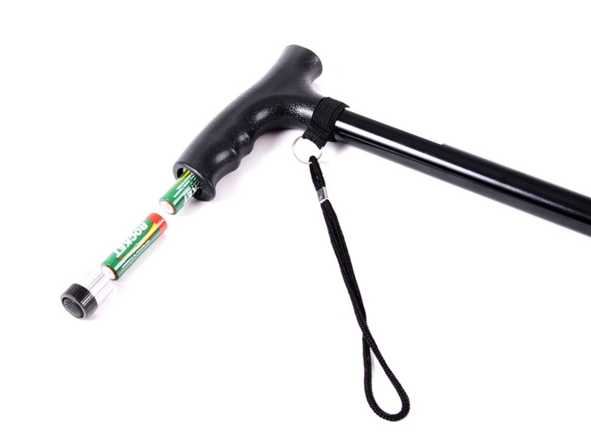 A fogantyú lámpával van felszerelve, amellyel világíthat az útra. A csomag 2 AA elemet tartalmaz. A járóbot végén csúszásmentes járóbot gumi van, ami csendes használatot tesz lehetővé.