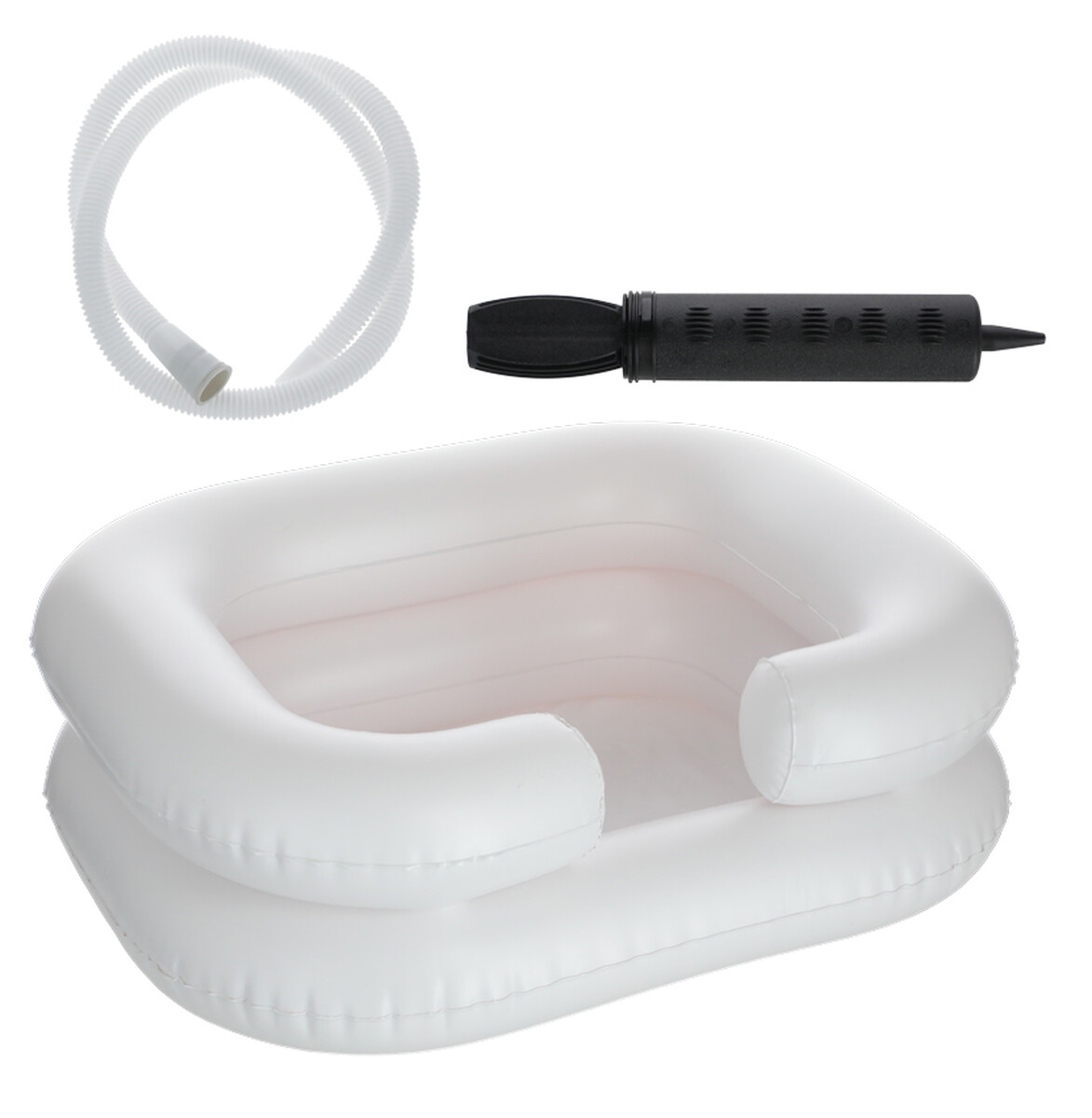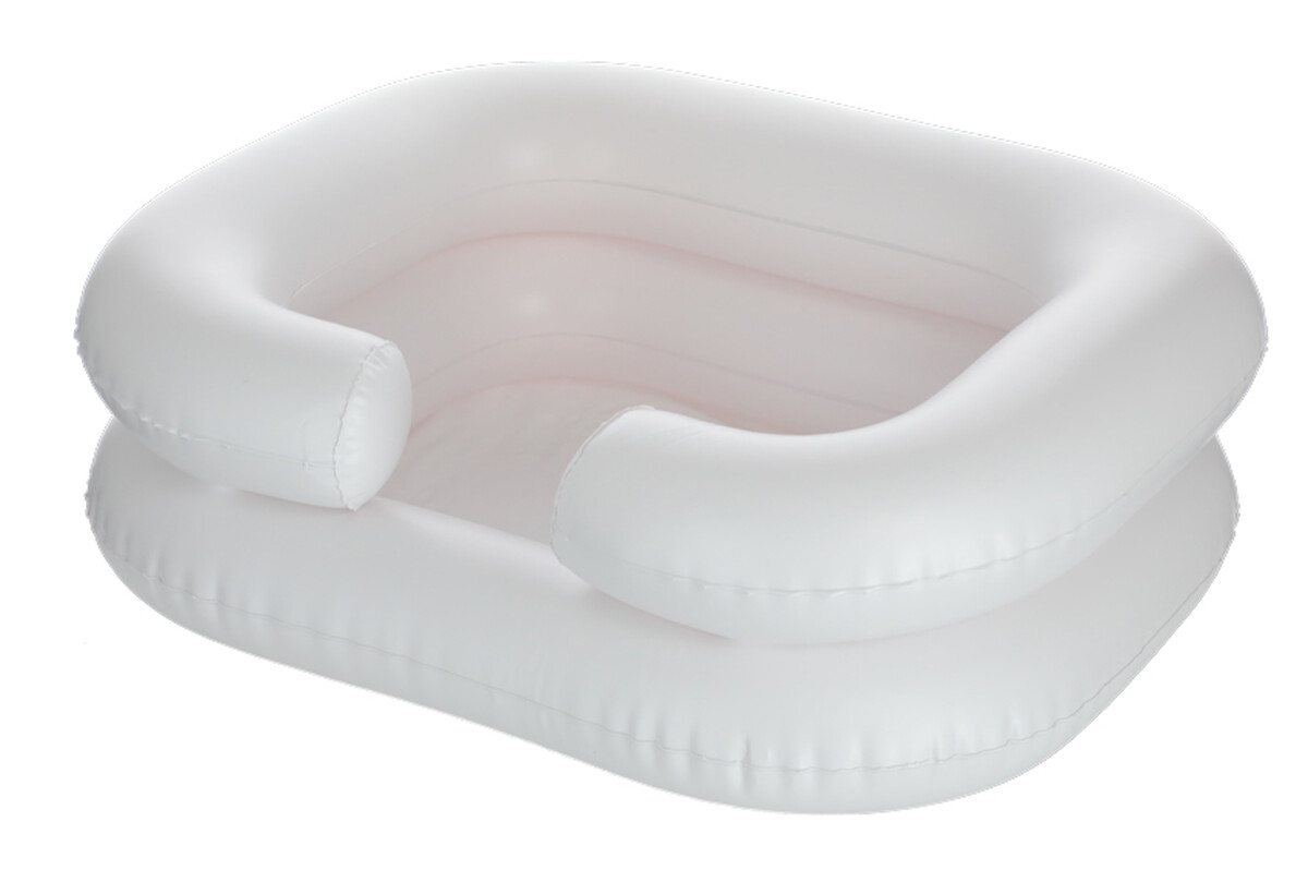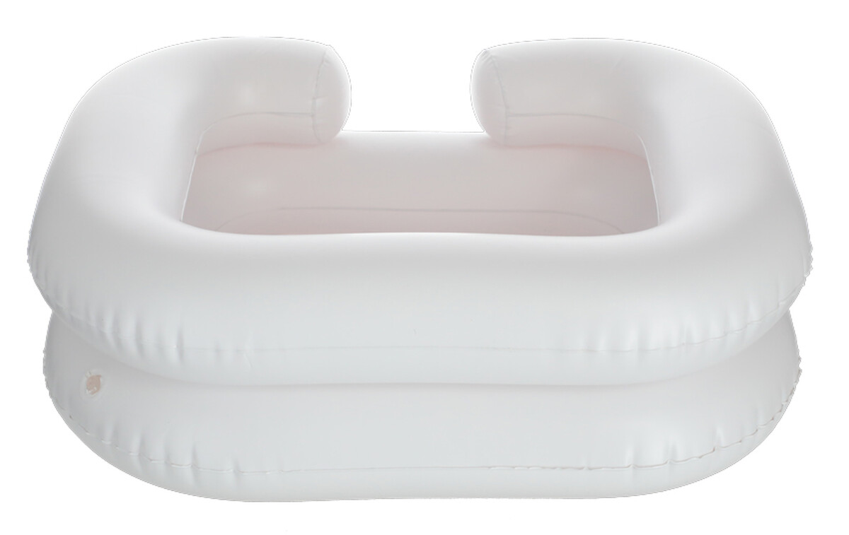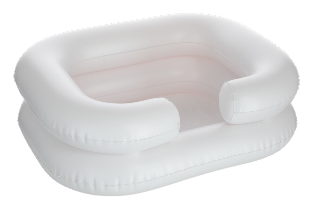 A felfújható mosdó megkönnyíti a hajmosást az ágyhoz kötött betegek ápolása folyamán, akik betegségük, vagy sérülésük miatt nem tudják megmosni segítség nélkül a hajukat.