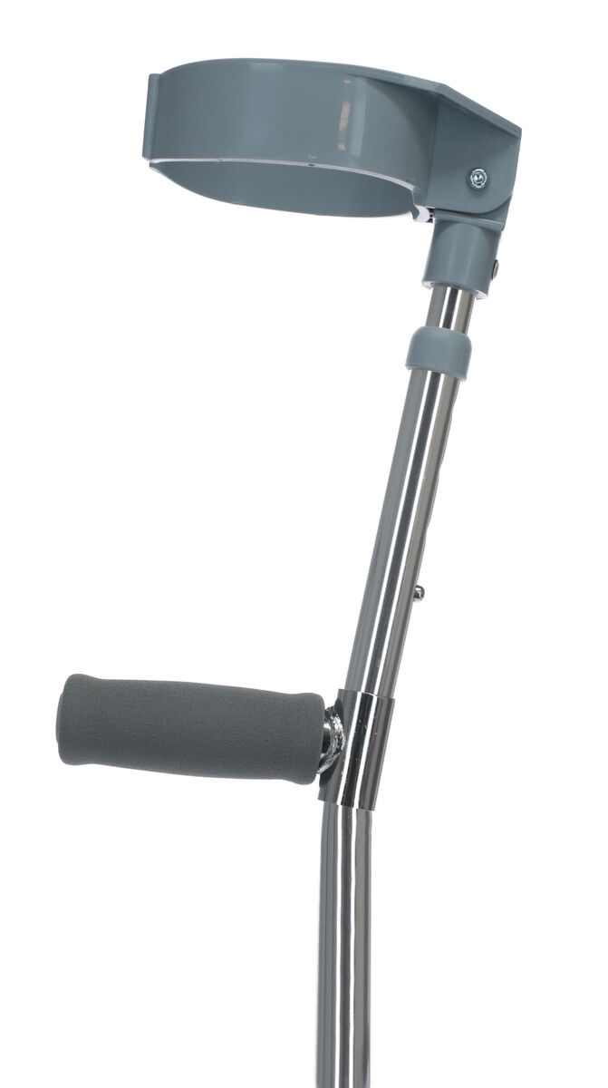 A könnyű és robusztus könyök eloxált alumíniumból készült, zárt kargyűrűvel. A mankó magassága két helyen állítható. A mankó a fogantyúnak köszönhetően megfelelő gyógyászati segédeszköz, különösen azok számára, akiknek problémát jelent a bot földről való felvétele.