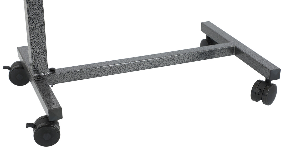 A kerekeknek köszönhetően az ágyasztal egyszerűen kezelhető és megkönnyíti a beteghez való hozzáférést. Görgős lábai 4 kerékkel vannak ellátva, miközben 2 kerék fékkel van ellátva, így az asztalt le lehet a kívánt helyzetbe rögzíteni. Az asztallap dönthető, fából készült és szélein rögzítőperem található, mely segíti az asztalra helyezett tárgyak lecsúszásának meggátolását.