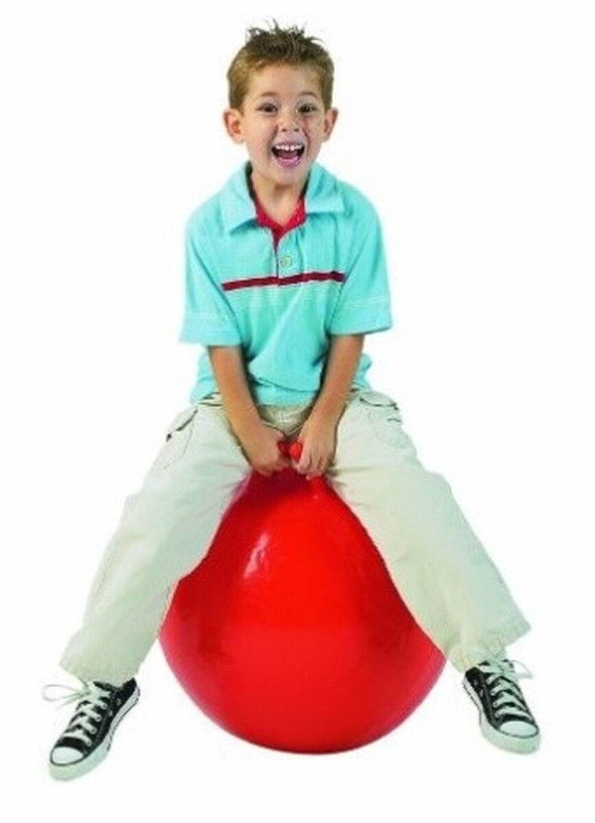 A gyerek fitnesz labda tetején egy kis fogantyú van, ennek tartásával a gyerekek elkerülhetik a lecsúszást.