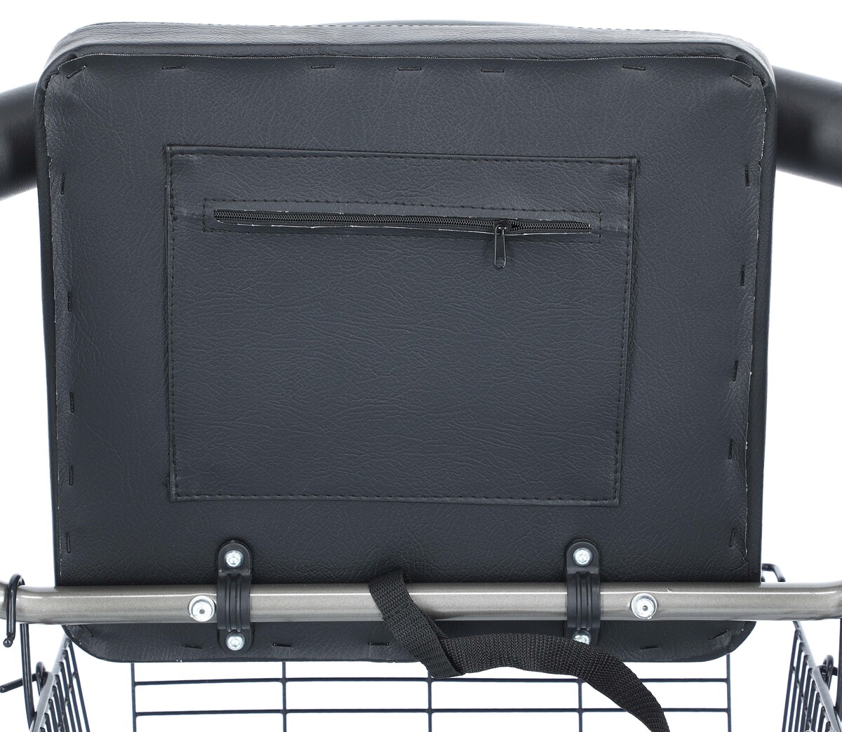 A tágas, háttámlával ellátott ülés kényelmes, mivel kellemes pihenést kínál a felhasználónak. ülést tesz lehetővé, ha a négykézlábra van szüksége a pihenésre. A rollátor jobb oldalán kétrészes járóbot tároló található, amelybe a mankó is eltehető.