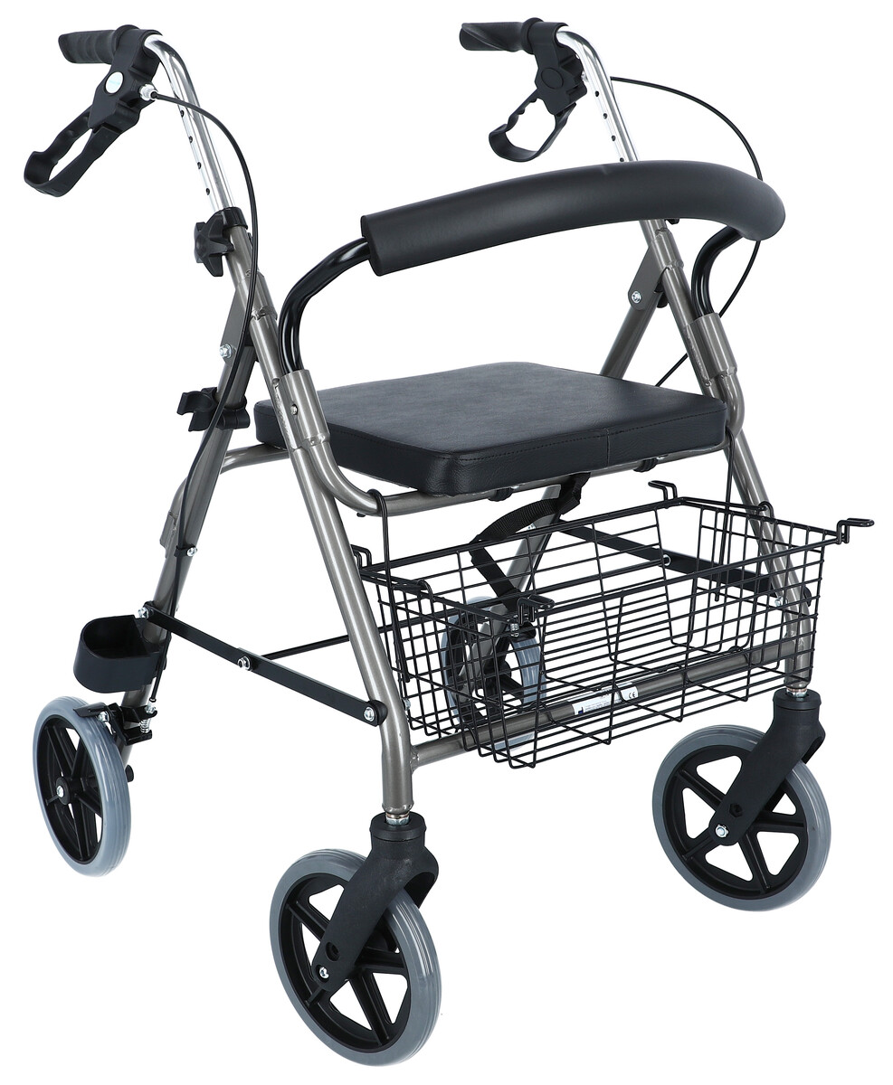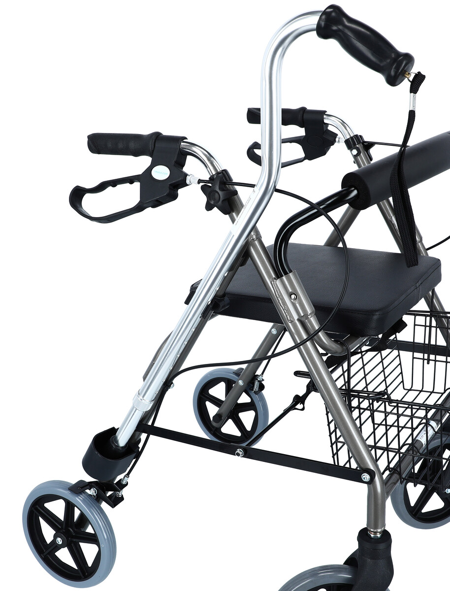 kényelmesbiztonságos és könnyű rollátor a járás megkönnyítésére szolgáló rehabilitációs segédeszköz. Az ergonómikusan kialakított fogantyúkon könnyen kezelhető fékek vannak. A rollátor két fokon fékelhető: a fogantyúhoz húzva gyengén fékelhet, a fék lenyomása után aktiválja a rögzítőféket, így biztosítva van a rollátor és ülésre fel van készítve. A fékek különböző pozíciókba állíthatóak.
