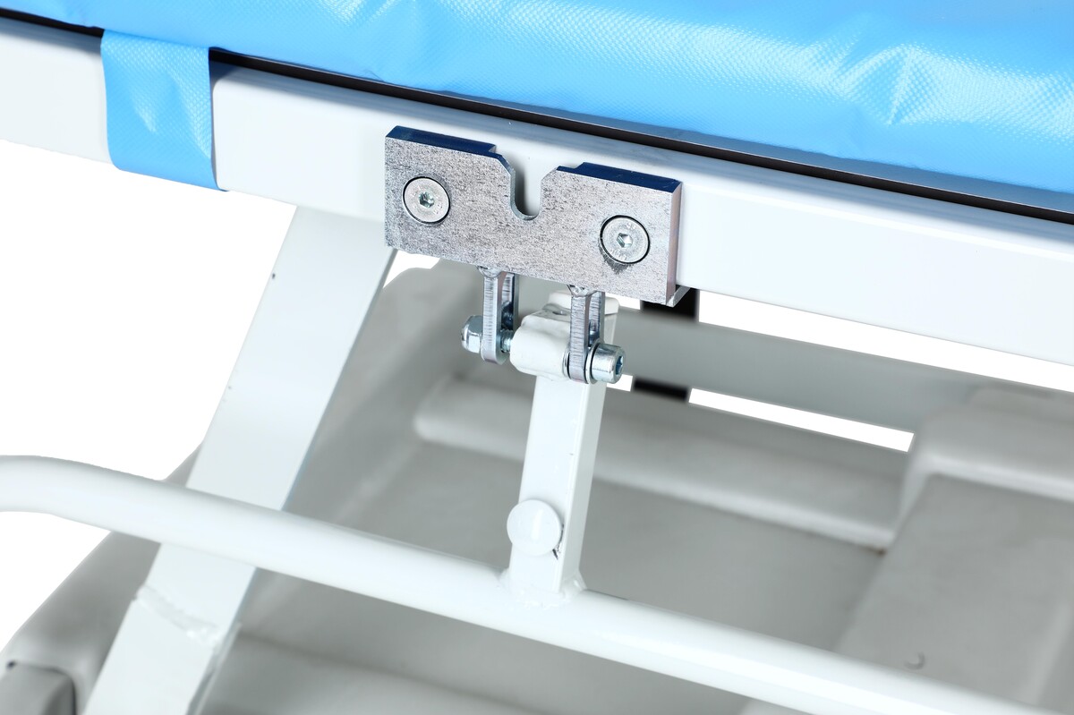 Az ágy ékpárnával rendelkezik, mely megkönnyíti a fürdetés menetét, valamint műanyag alvázfedéllel van ellátva. Az oldalrácsok lehajthatóak, és rozsdamentes acélból vannak gyártva, így növelik a beteg biztonságát, megvédik a kieséstől.