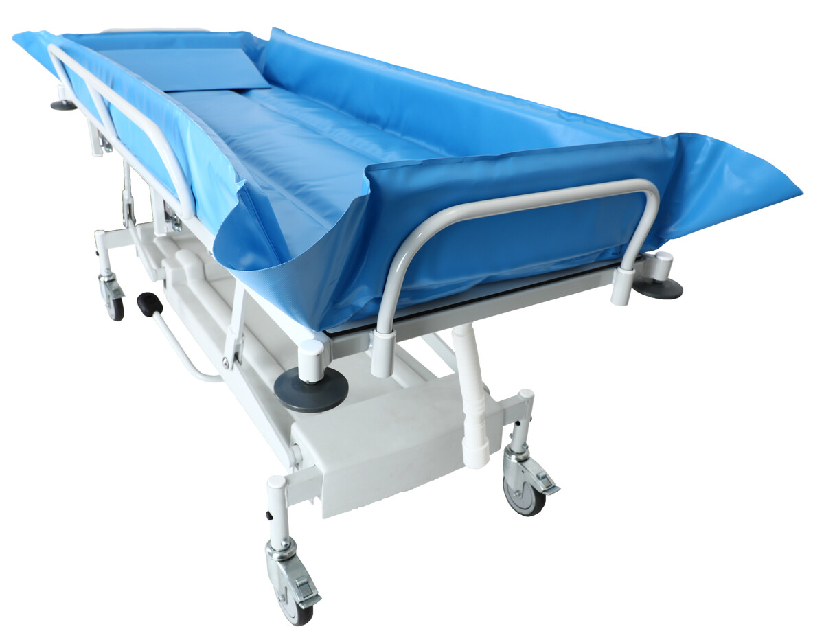 A fürdető ágy magassága állítható. Nagy segítséget nyújt azon betegek fürdetésénél, akik ágyhoz vannak kötve, hasznos akár az otthoni ápolásnál, valamint kórházakban és különféle ápolási intézményekben is. Használata nagyon könnyű és egyszerű.