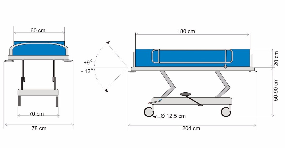 Az ágy minden funkciója az elektromos energiaforrástól függetlenül működik. Szerkezete ellenálló acélból készült, mely felülete porszórásos lakkal van kezelve. A lábrésznél leeresztő cső található.