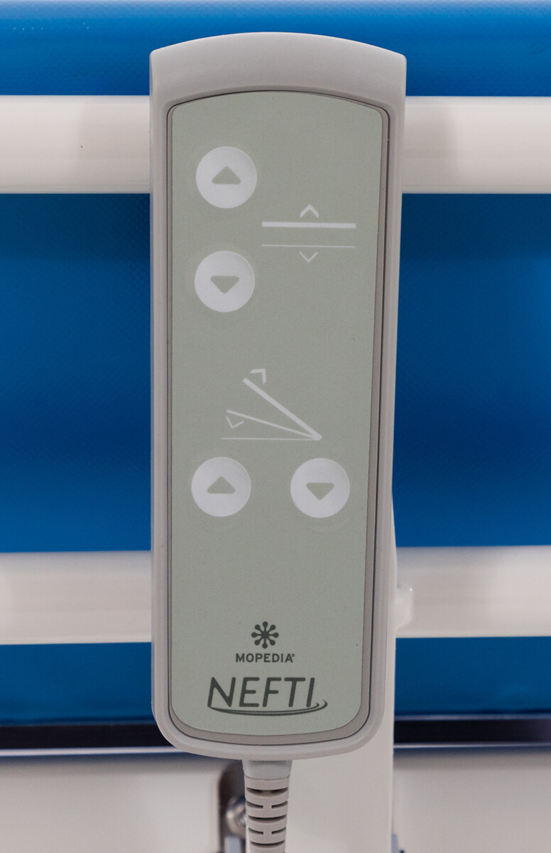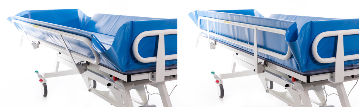 A ágyhoz habszivacs párna tartozik (55 x 55 x 14/2 cm ), mely megkönnyíti a fürdetés menetét, valamint műanyag alvázfedéllel van ellátva. Az oldalrácsok lehajthatóak, és rozsdamentes acélból vannak gyártva, növelik a beteg biztonságát, megvédik a kieséstől.