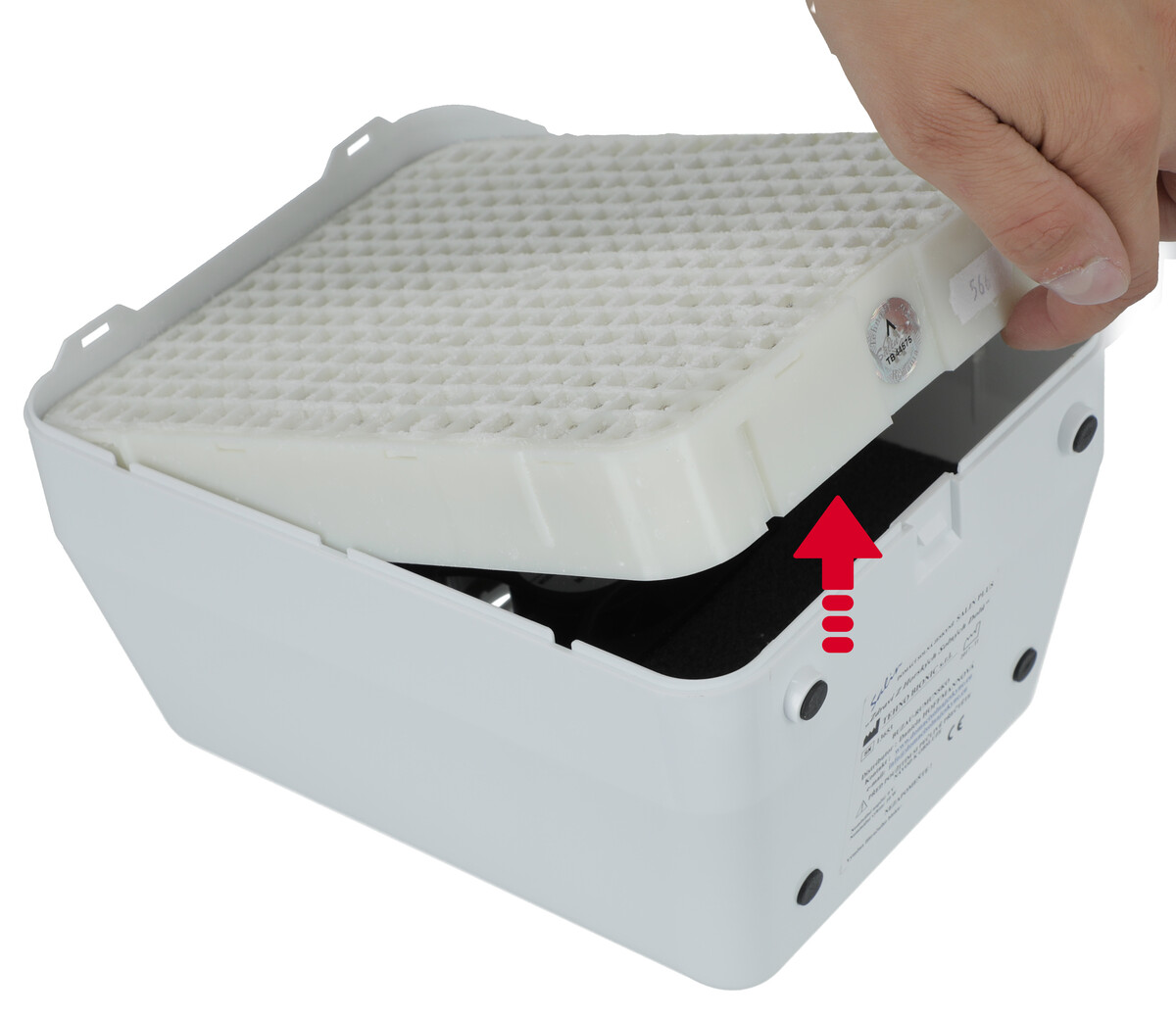 • húzza le a készülék fedelét és távolítsa el a használt szűrőblokkot,