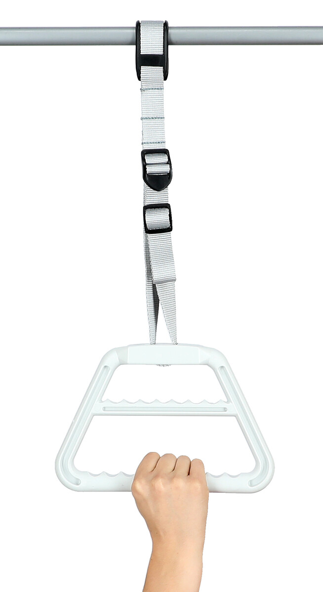 A kapaszkodó trapéz hossza állítható, segíti a fekvő betegek felállását, felülését.