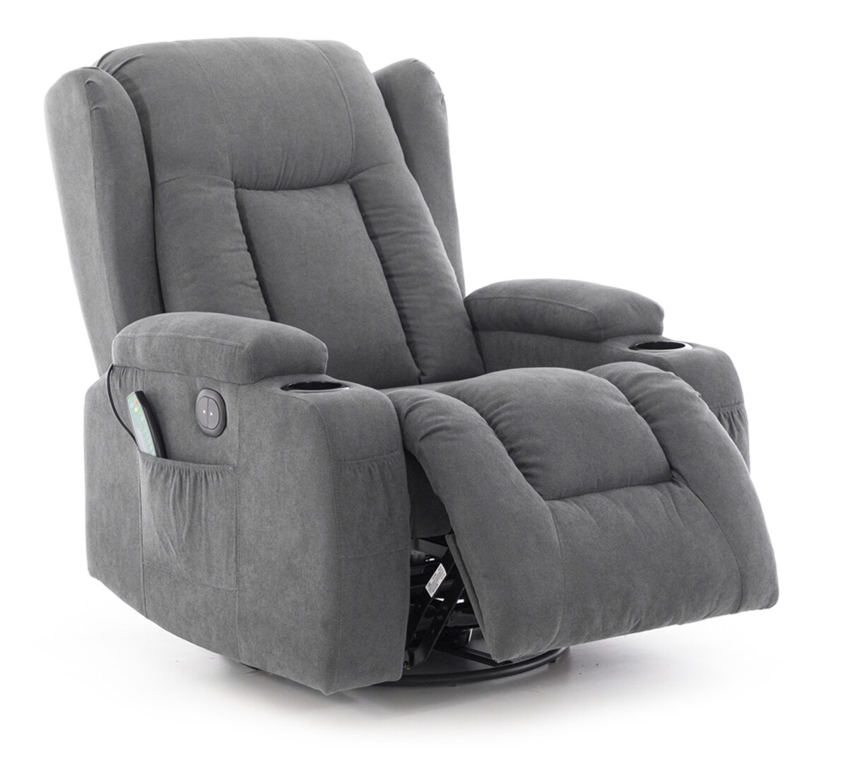 A relaxációs, állítható fotel tervezésénél az tárolóhelyek is fontos szempontként szerepeltek. Mindkét karfán találhatók műanyag pohártartók, alatta pedig további 4 zseb a távirányítók és egyéb apróságok elhelyezésére.