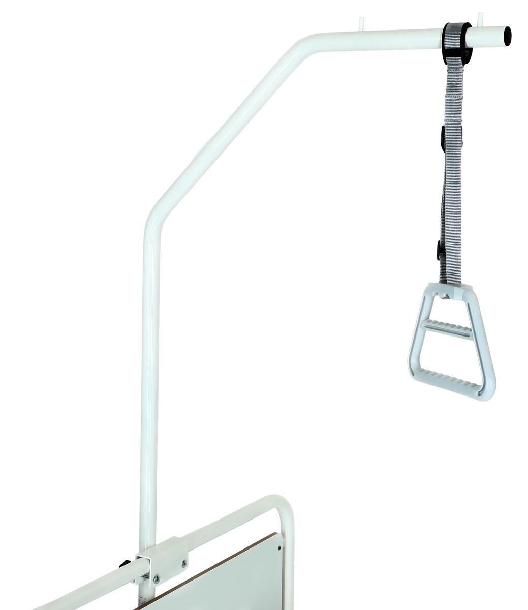 Fémvázas, ágyhoz kapcsolható kapaszkodó, állítható hosszúságú szíjjal.