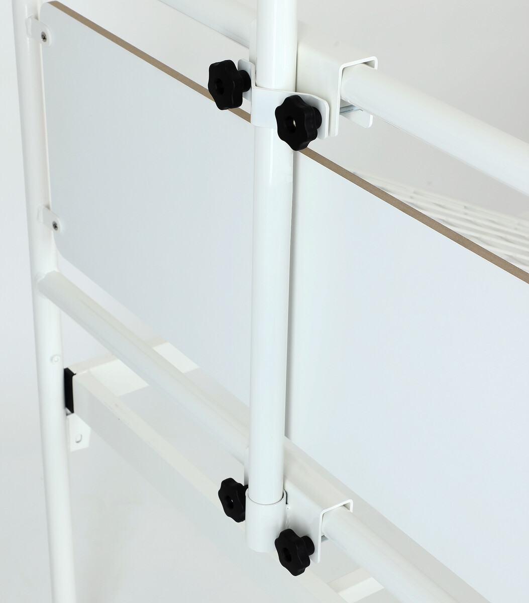Az ágy hátoldalára erősíthető váz erősített krómozott acélból készült. Különösen alkalmas kórházi ágyakhoz. Az állvány magassága az ágy támasz tetejétől a szíj csatlakozási helyéhez 135 cm.
