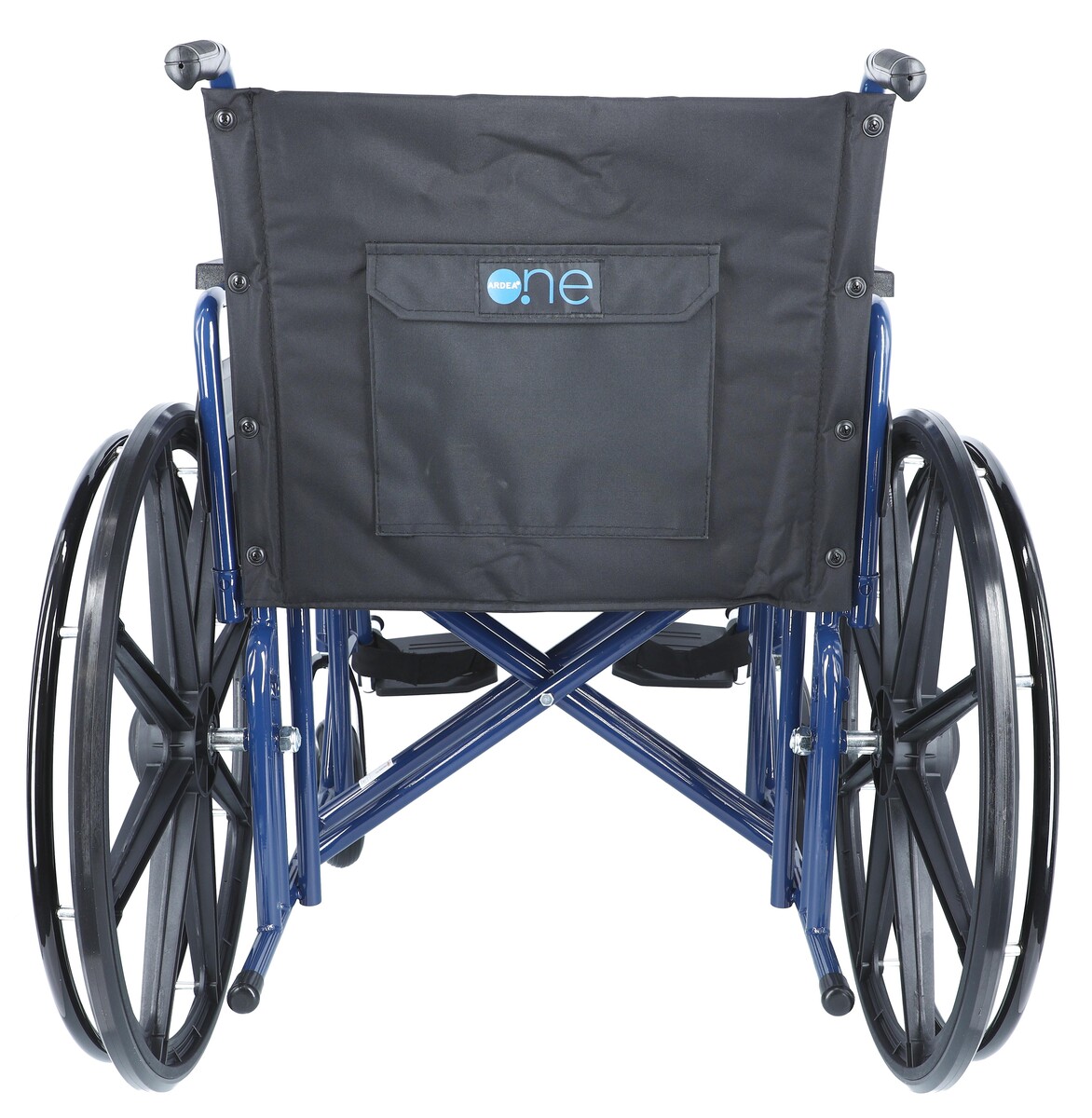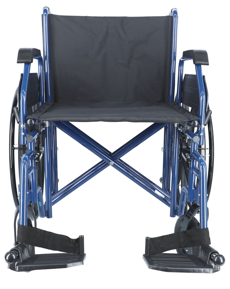 Nagyobb testtömegű betegek számára alkalmas mechanikus kerekesszék poliuretán kerekekkel.