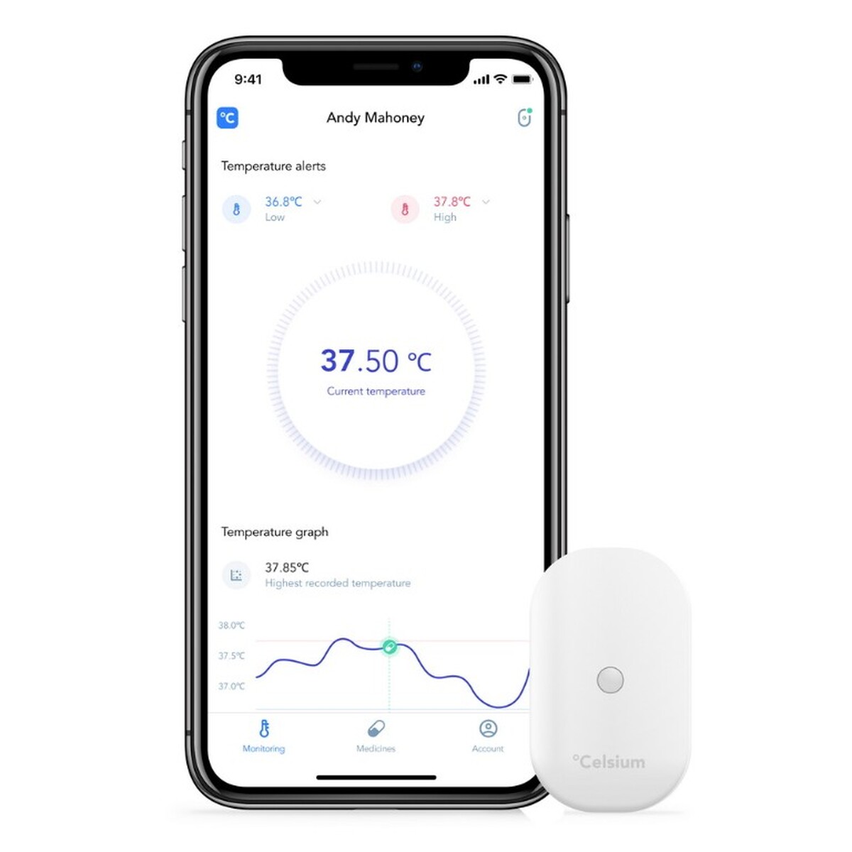 A vezeték nélküli hőmérő elektronikus készülék, mely elemmel működik. Az emberi test hőmérsékletének mérésére és monitorozására szolgál a hónaljban. Az eredményeket vezeték nélkül továbbítják a vevőkészülékre (okostelefon, tablet). A készülék többször is használható, és 2 évesnél idősebb gyermekek számára is alkalmas. Kórházi és otthoni használatra is alkalmas.
