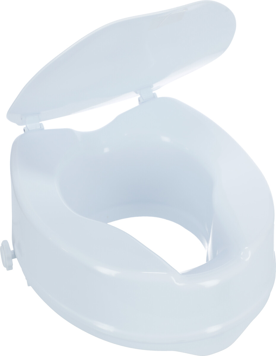 A fedéllel ellátott univerzális WC-magasító maximális kényelmet nyújt azoknak a személyeknek, akiknek nehézséget okoz a leülés vagy a felállás.