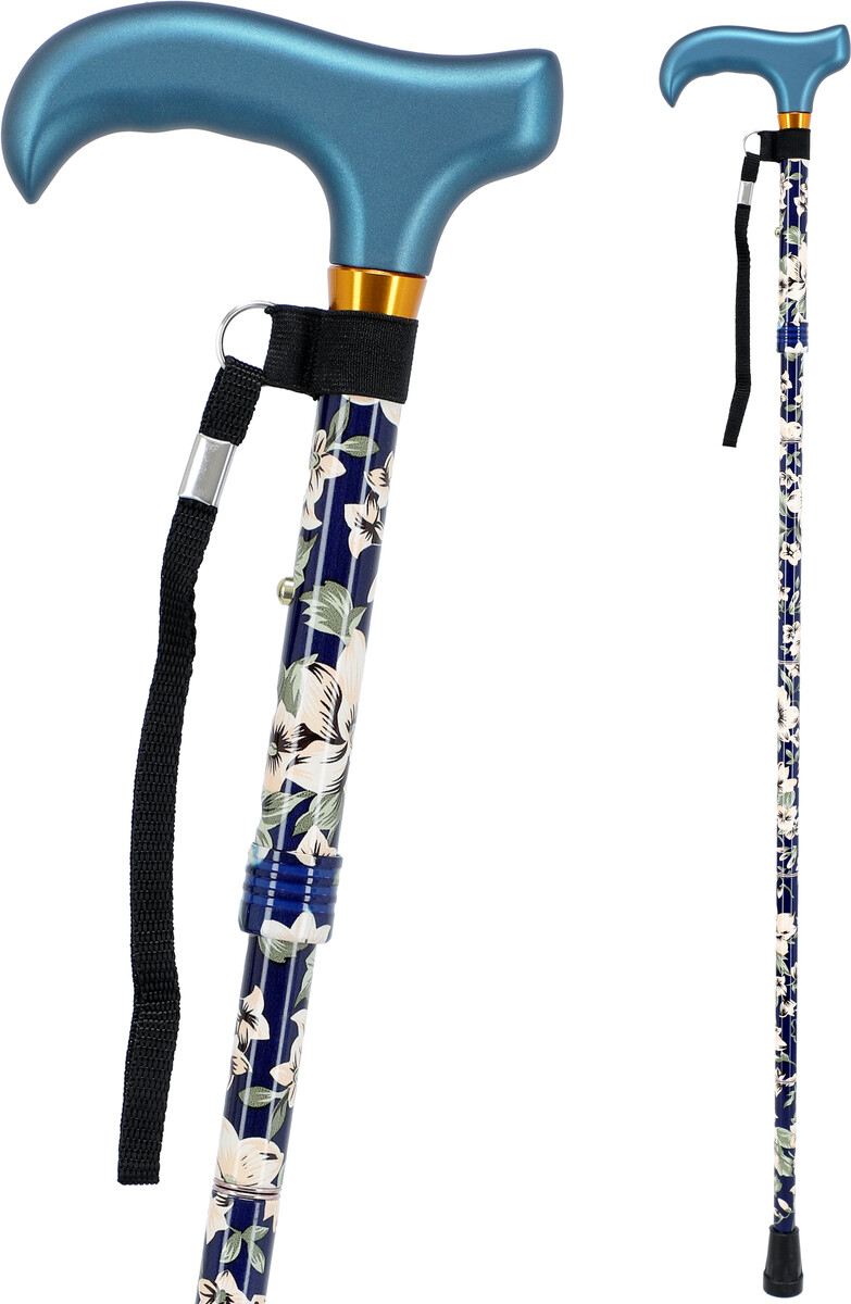A színes virágos összecsukható sétabot, anatómiai fogantyúval, egy modern járóbot amely a járást segíti. A járóbot végén csúszásgátló járóbot gumi van, ami csendes és biztonságos használatot biztosít.