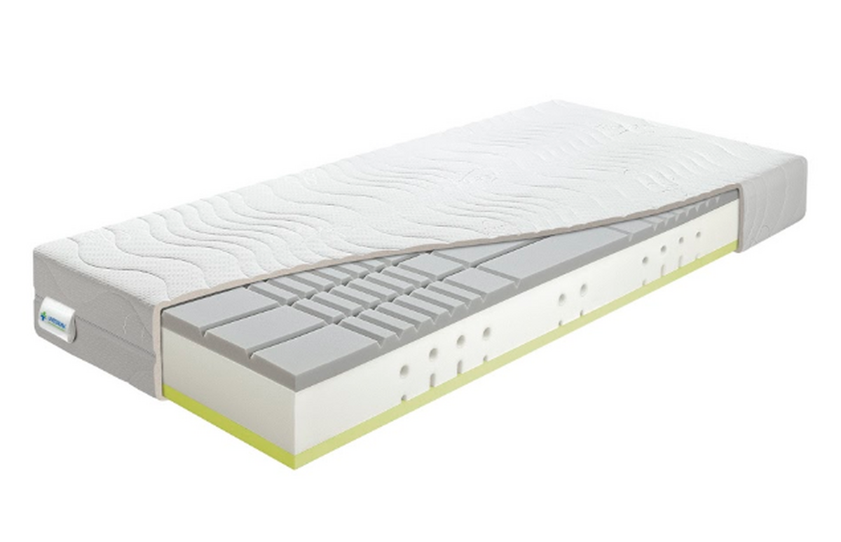 Szendvics ortopéd matrac VISCO elasztikus memóriahab réteggel és kényelmes habból készült anti-decubitus profillal.