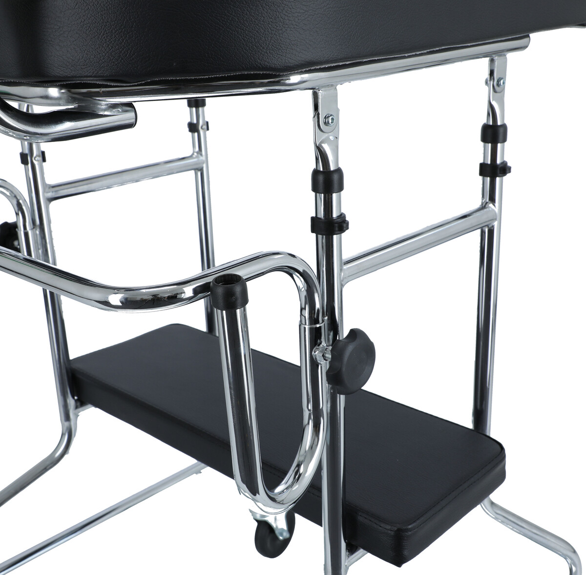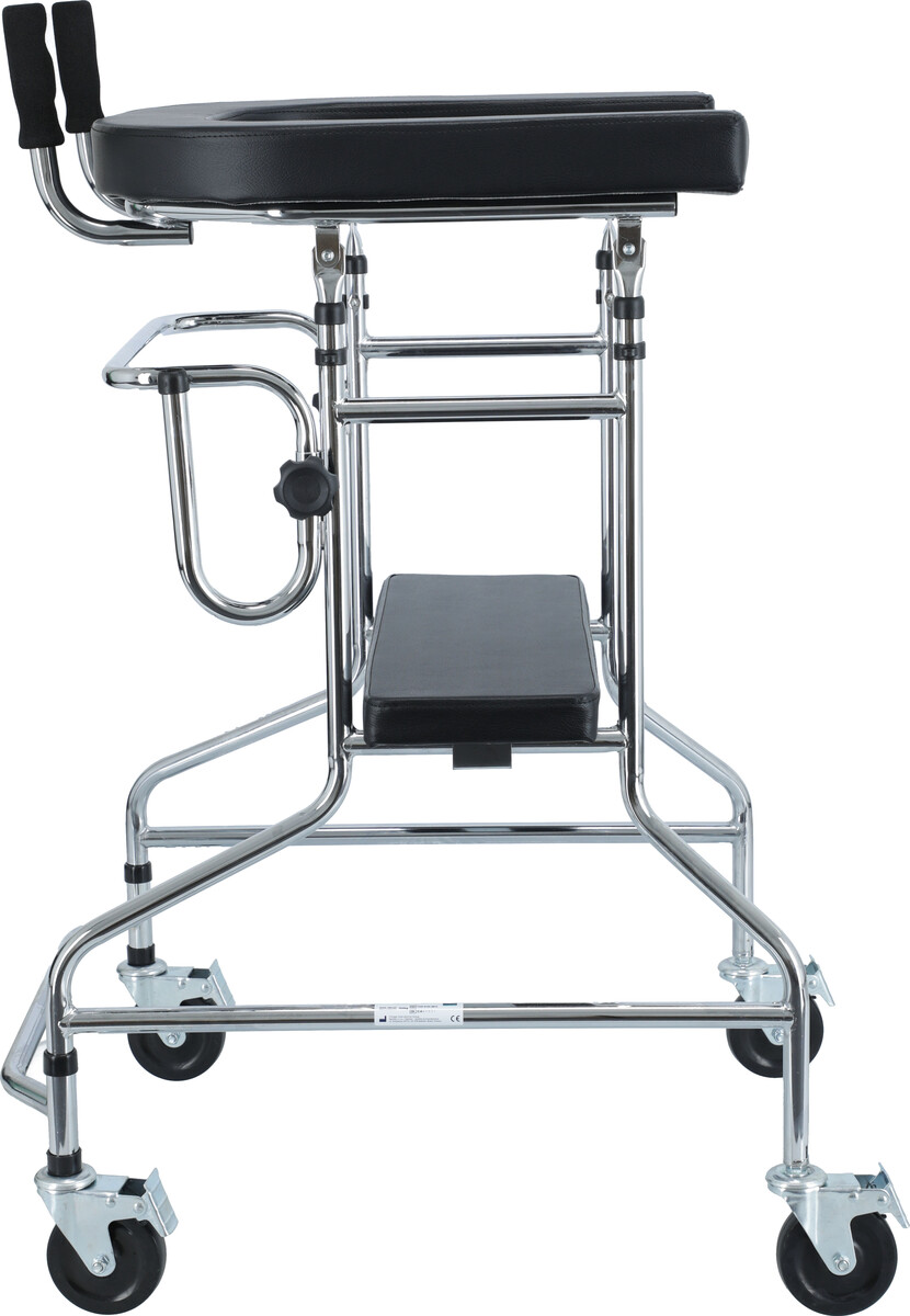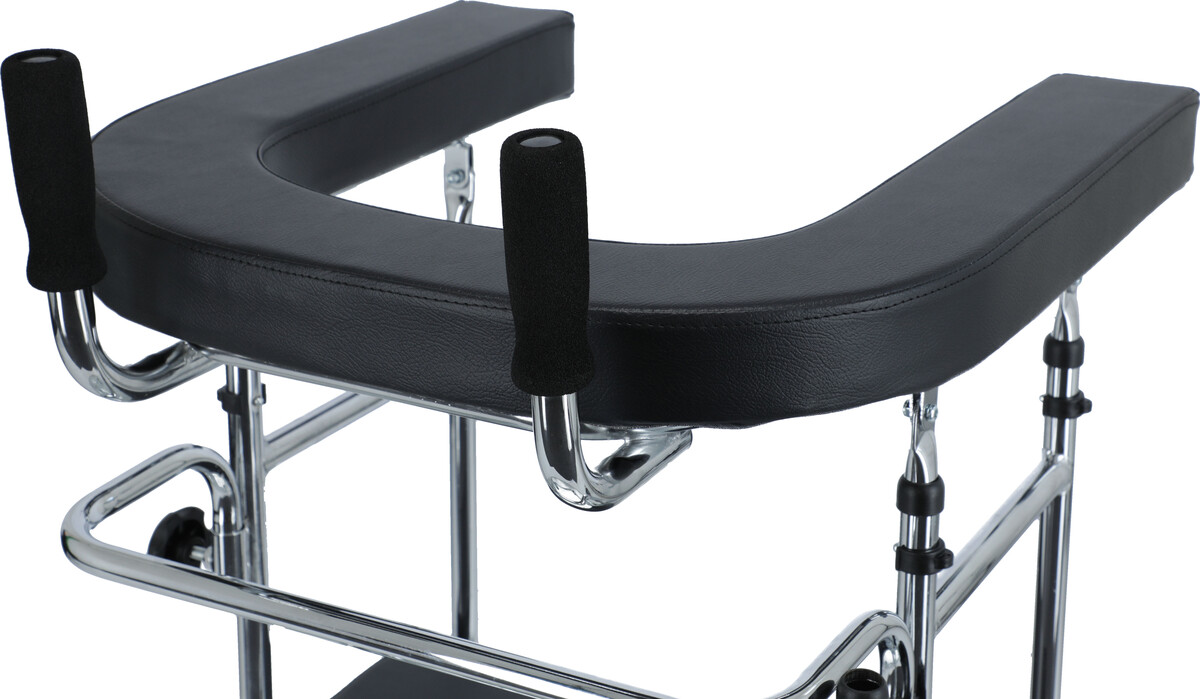 A járókeret megerősített, állítható magasságú U alakú karral rendelkezik, amely támasztást nyújt a kezeknek.