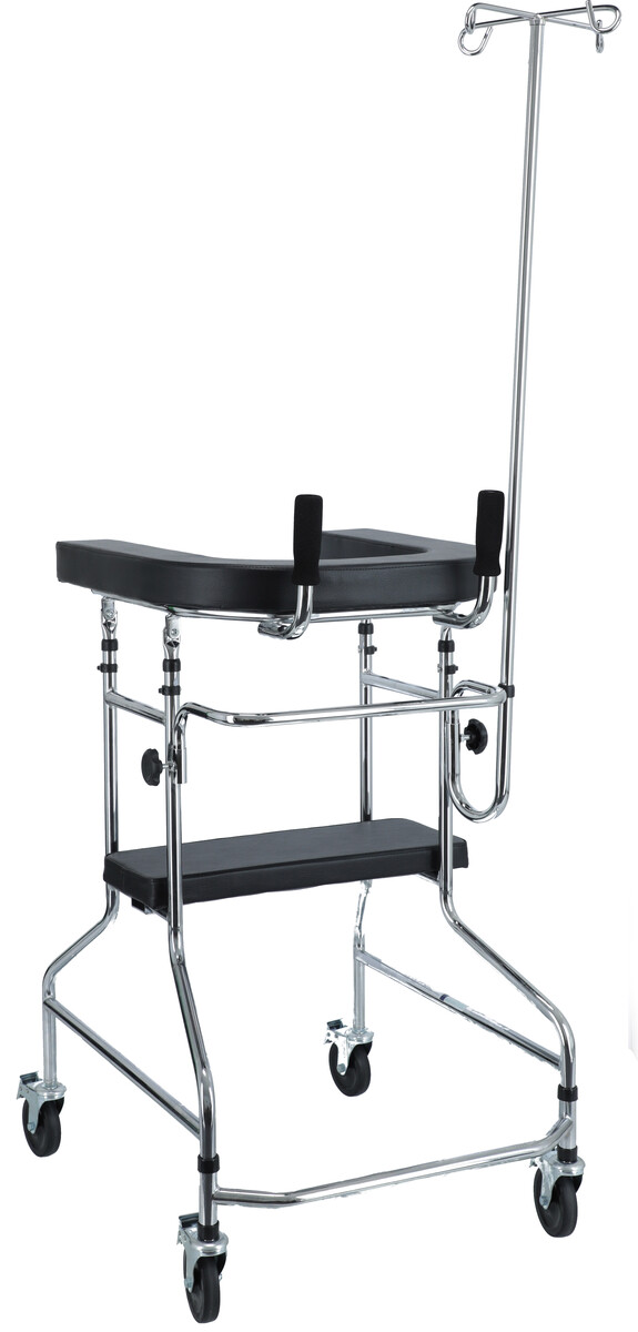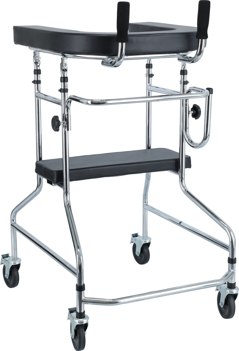Kerekes járókeret megerősített U alakú vázzal a paciens tehermentesítéséhez járás közben.