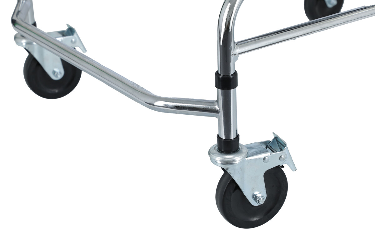 A járókeret 4 db 10 cm átmérőjű forgó kerékkel rendelkezik, amelyek mindegyike tartalmaz egy féket.