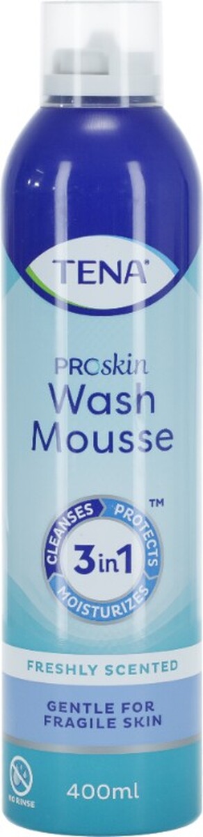 A TENA ProSkin mosdatóhab kíméletes megoldás a szappanos-vizes mosdatás helyett. Alkalmas gyakori bőrtisztításhoz, például az inkontinens betegek gondozása során. A friss illatú, 3 az 1-ben mosdatóhab tisztítja és védi az érzékeny, sérült bőrt. Kíméletes és kényelmes megoldás – fújja a habot egy törlőkendőre, majd vigye fel a bőrre. Nem igényel plusz leöblítést.
