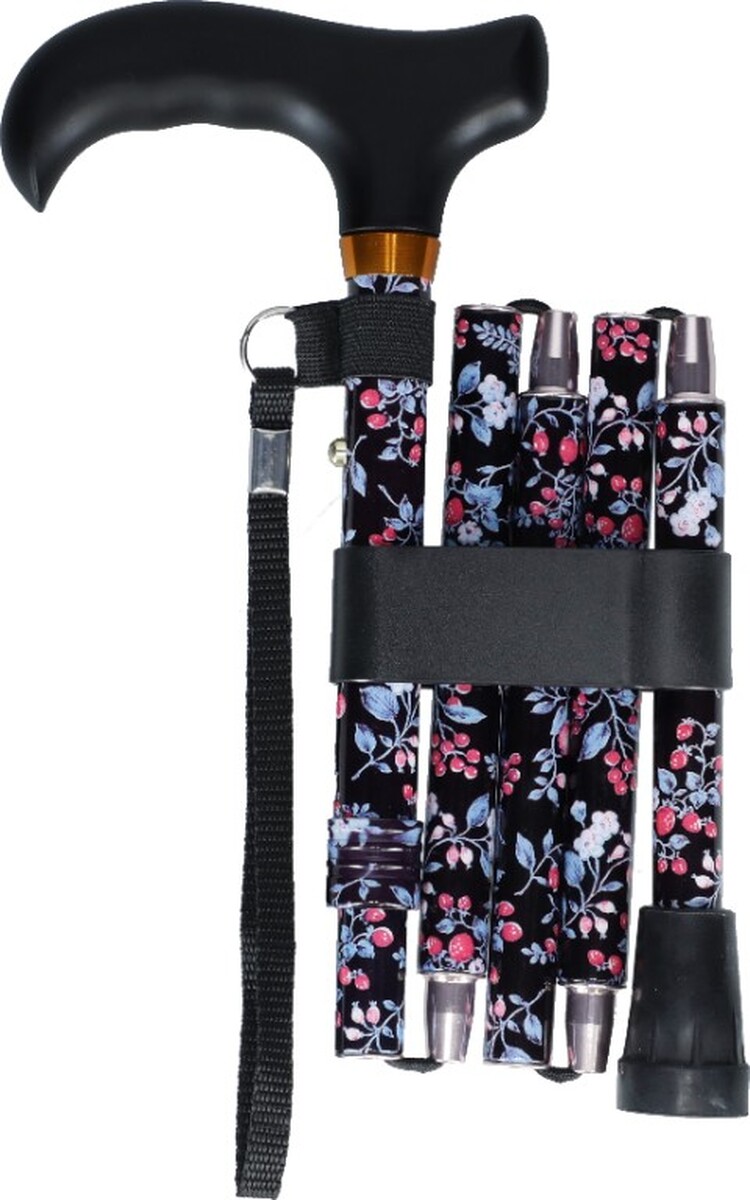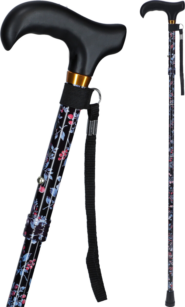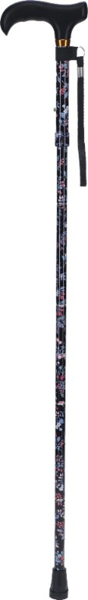 Anatómiai fogantyúval ellátott mintás alumínium, összecsukható járóbot. A botvég gumi a biztonságos és csendes felhasználás segíti.