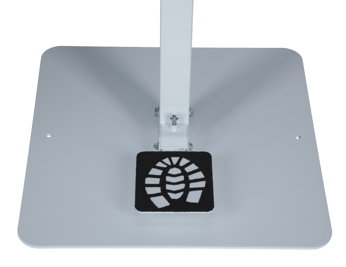A fertőtlenítő állvány tartós, stabil felépítése lehetővé teszi, hogy szabadon elhelyezhesse a helyiségben. Az alapon előre fúrt lyukak lehetőséget nyújtanak a talajhoz történő rögzítésre is. Így a fertőtlenítőszer alapvető helyén kívül a borulás vagy lopás megelőzésében is segít.