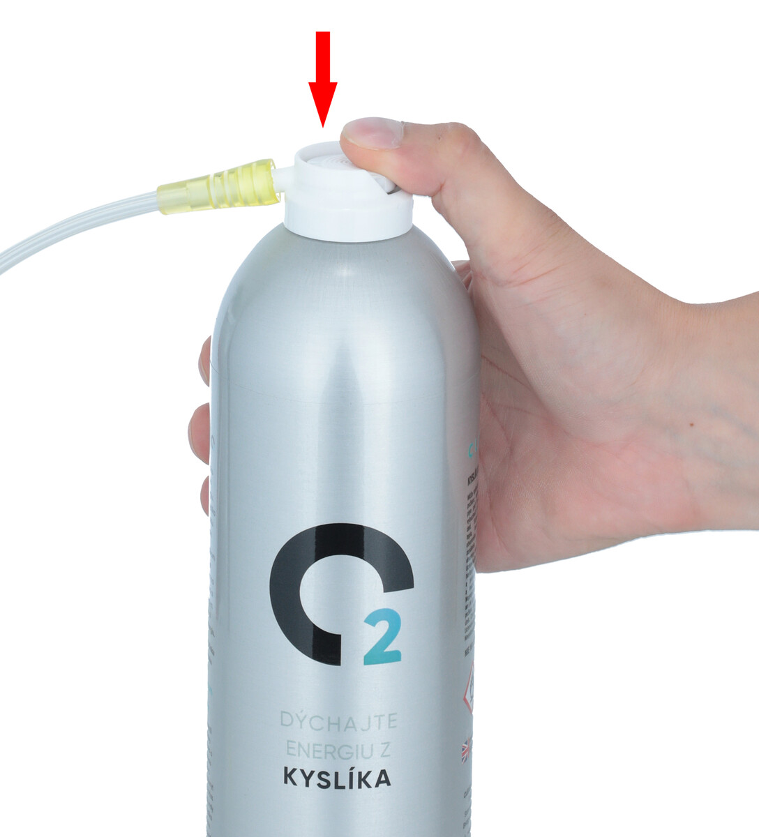 • távolítsa el a fehér védőkupakot az oxigénpalack tetejéről