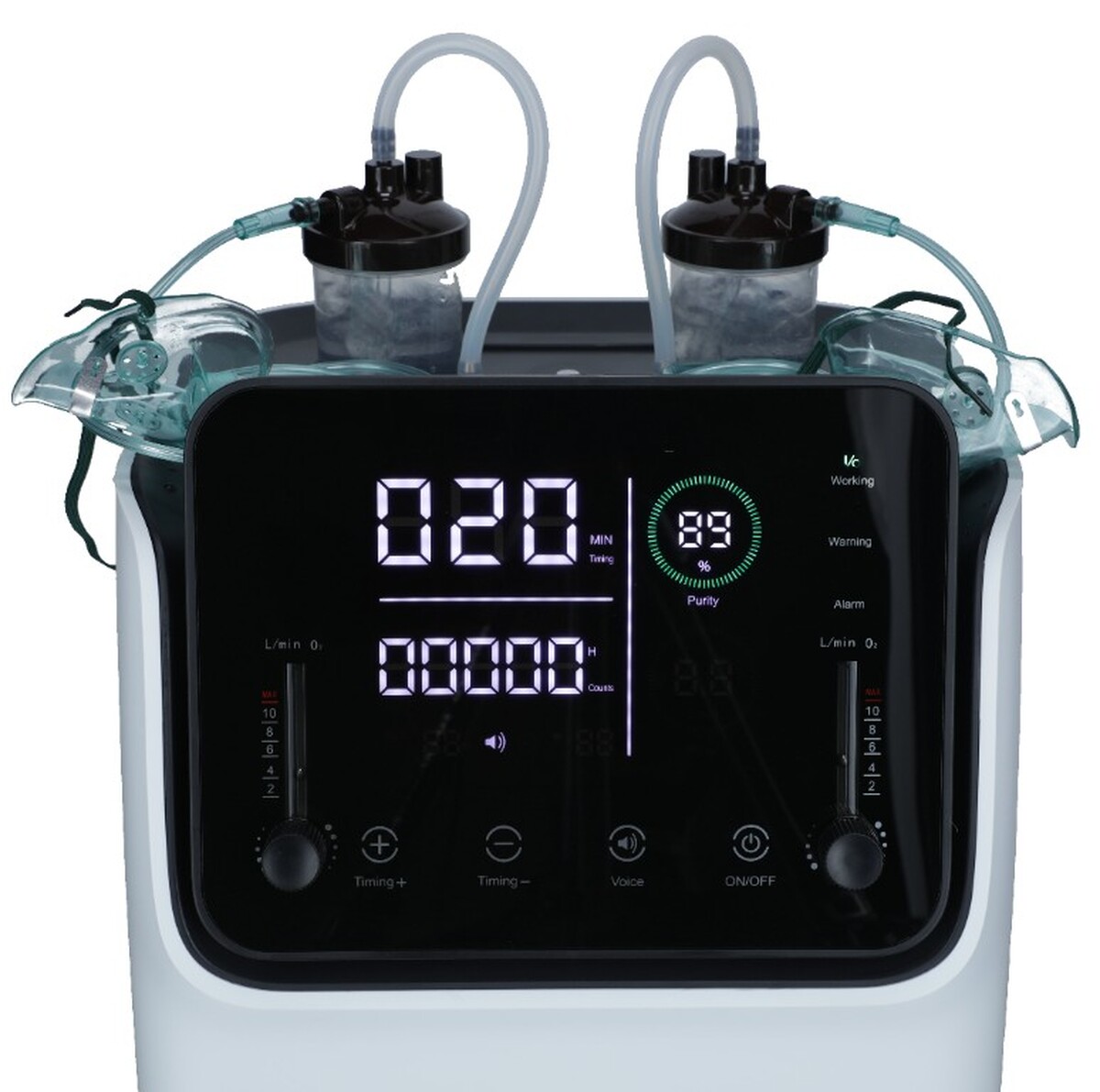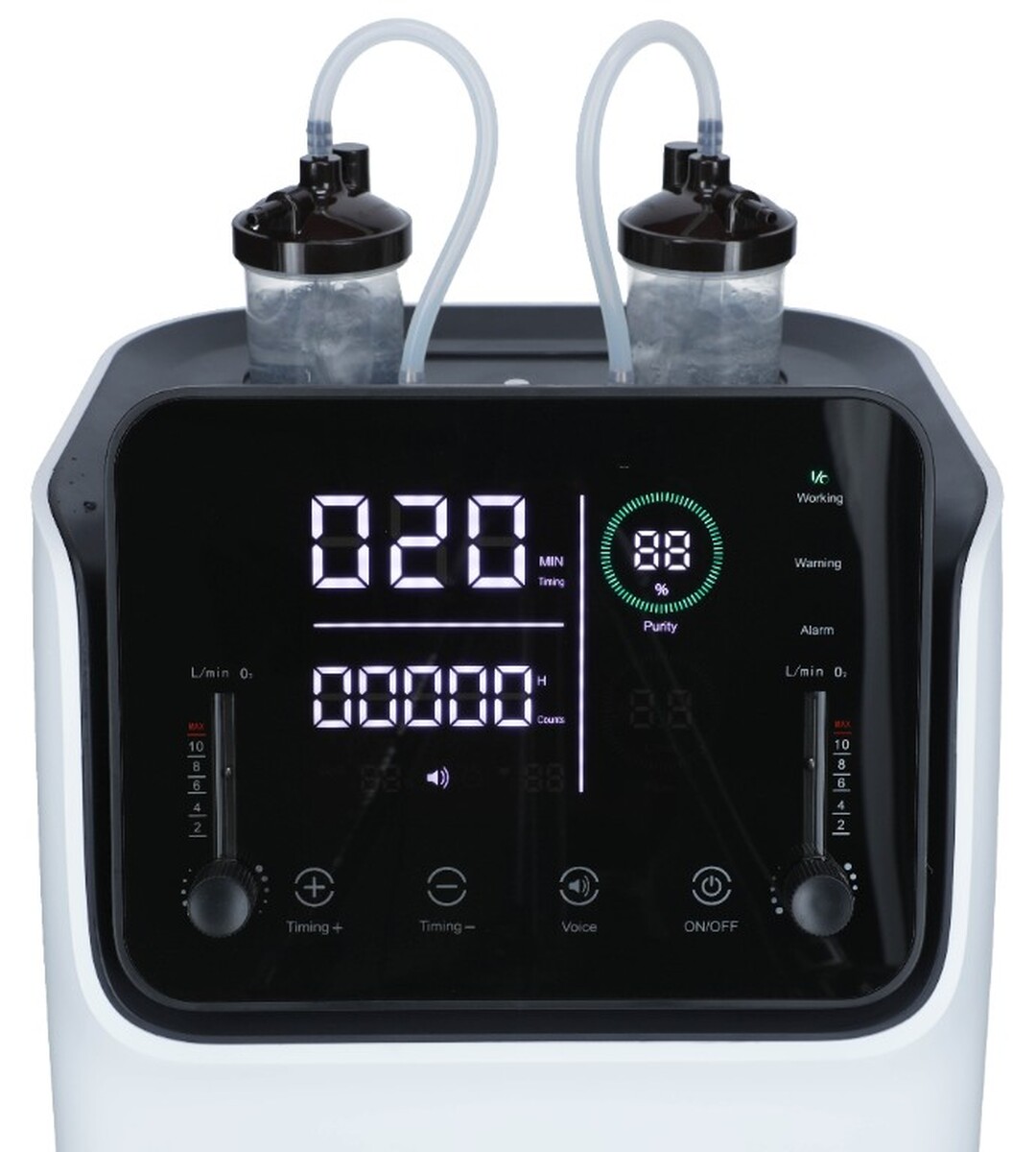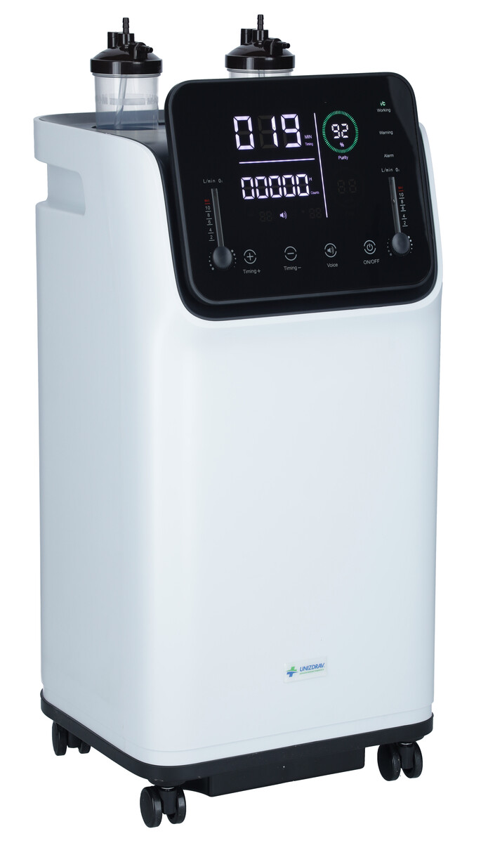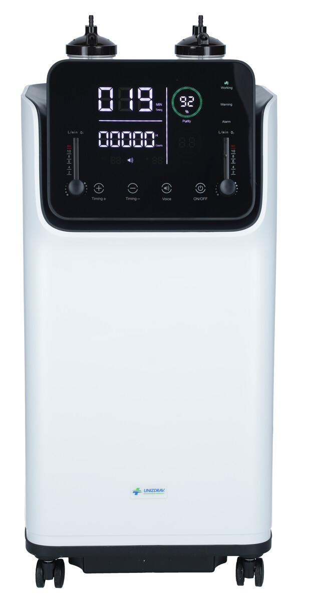 Professzionális oxigénkoncentrátor ZY-10FW két különálló oxigénkimenettel a teljes oxigénterápiához egyszerre 2 fő részére, alkalmas otthoni használatra és egészségügyi intézményekbe is.