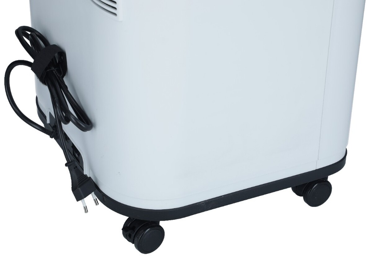 A koncentrátor négy kiváló minőségű kerékkel van felszerelve, amelyek puha szőnyeg mellett is egyenletes mozgást tesznek lehetővé a helyiségben, emelés nélkül, ugyanakkor magassága és a vezérlő kijelző kiváló olvashatósága teszi alkalmas közvetlenül a páciens ágya melletti elhelyezésre az irányítási kényelem növelése érdekében.