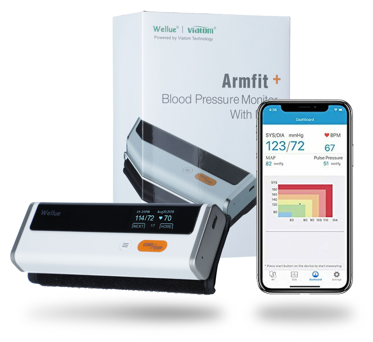 A szisztolés és diasztolés vérnyomás mellett az Armfit+ pontosan megméri az úgynevezett közép-artériás nyomást (MAP) és a pulzusszámot is, amit a pulzoximéterekből is ismerhet.
