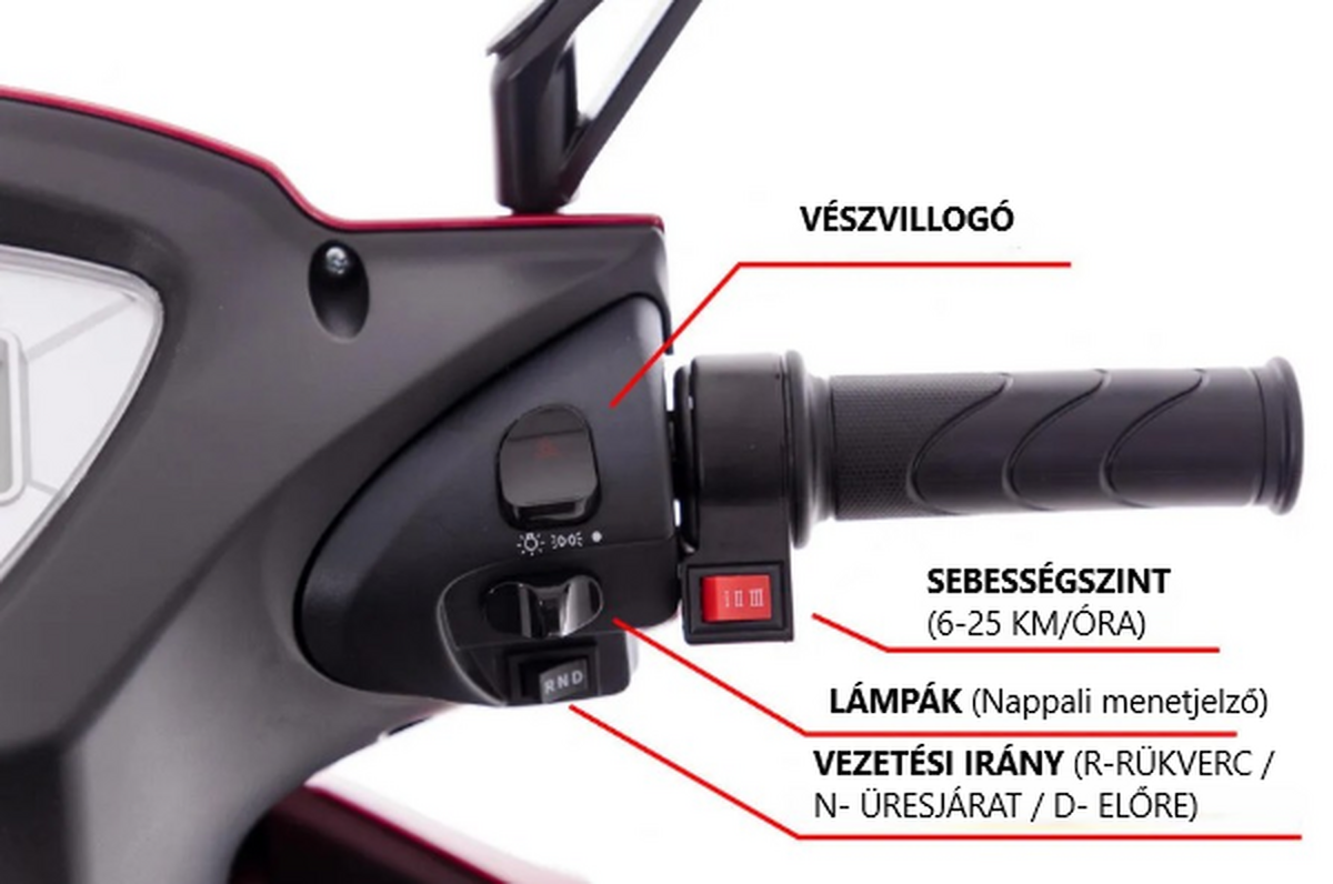 - sebességszabályzó a jobb oldali markolaton