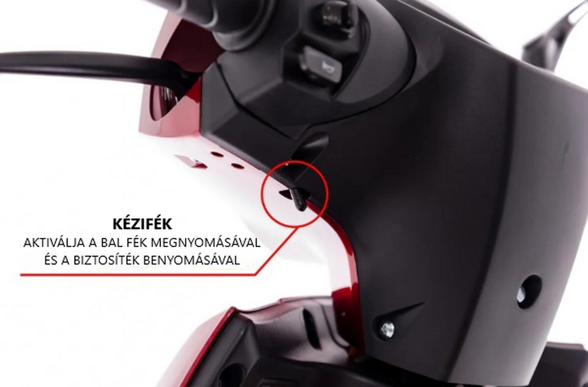 - kormányra szerelt kézifék a robogó teljes rögzítéséhez sík felületen