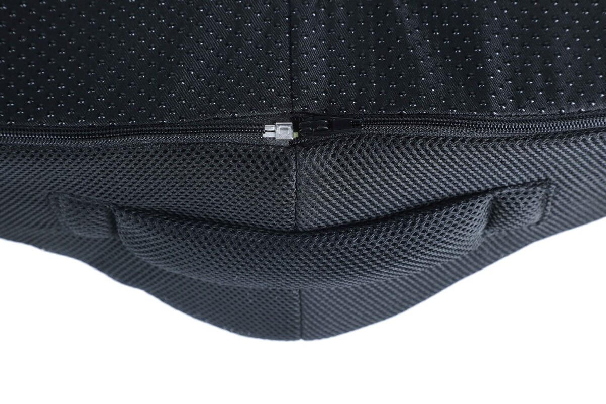 A párna felületét légáteresztő sportháló borítja, amely kellemes tapintású. A huzat levhető és kényelmesen mosható. A párna alja csúszásgátló, amely számos kis gumi csúszásgátló pontból áll.