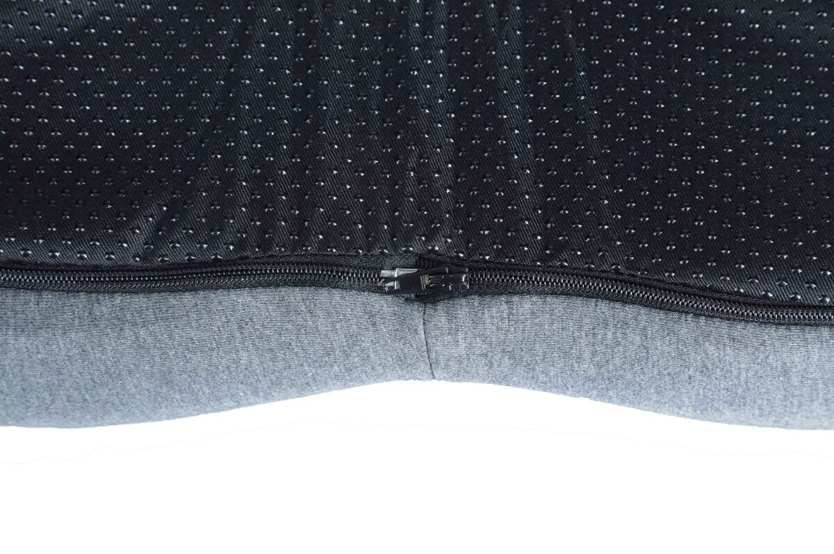 A párna felületét légáteresztő sportháló borítja, amely kellemes tapintású. A huzat levehető és kényelmesen mosható . A párna alján csúszásgátló kezelés található, amely számos kis gumi csúszásgátló pontból áll.