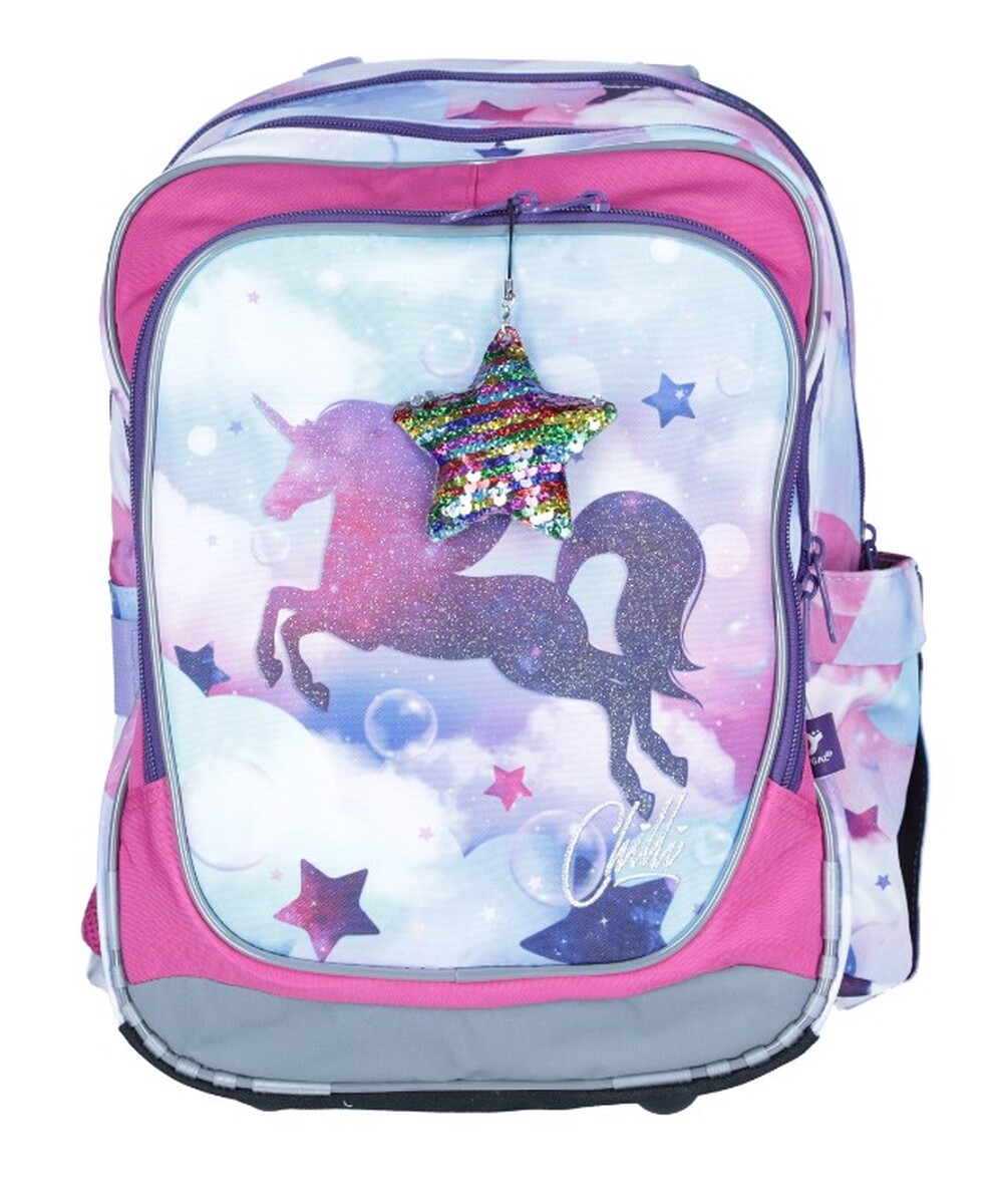 Az egyszarvú motívumú ENDY iskolatáska kompakt méreteinek és könnyű súlyának köszönhetően ideális általános iskola alsó fokozatos kisiskolásainak. A színes dizájn egy csillag formájú csillogó medállal kiegészítve biztosan sok kishölgynek tetszeni fog, súlya kevesebb, mint 1 kilogramm, így minden szülő imádni fogja.