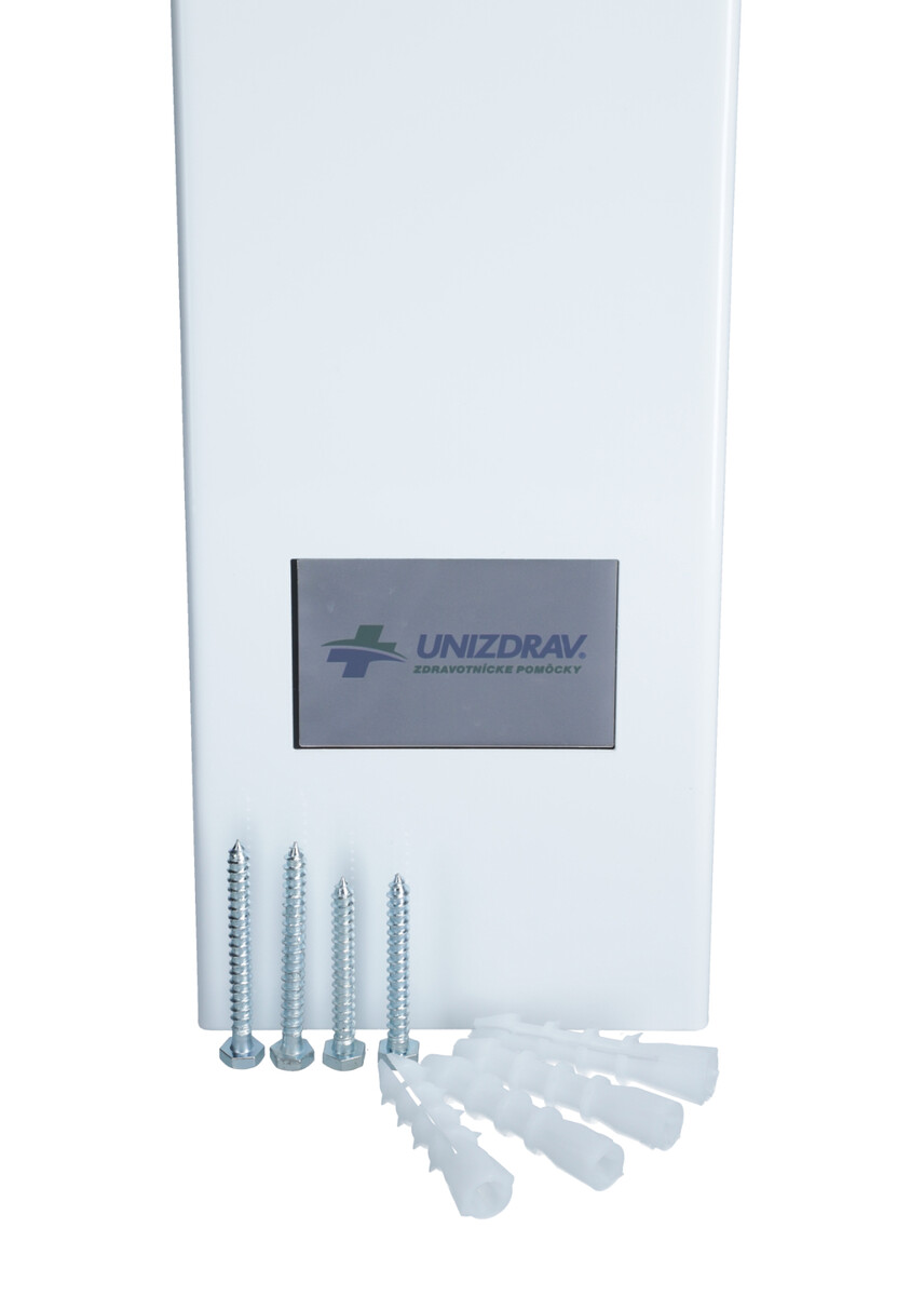Az UNIZDRAV baktériumölő radiátor tartalmaz egy statikus fali állványt, kábelt, csavarokat, kapcsokat és előre elkészített lyukakat a falra szereléshez.