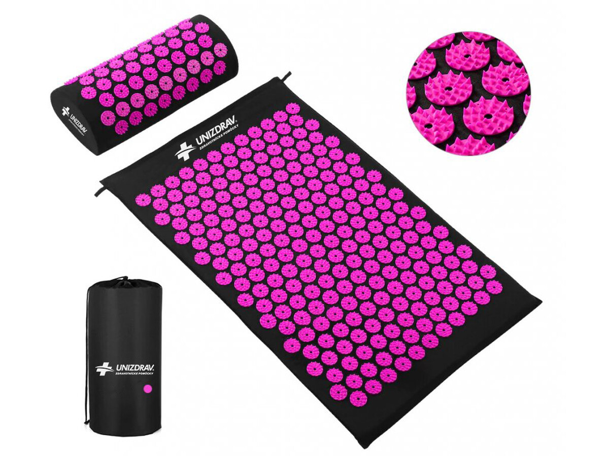 UNIZDRAV Akupresszúrás alátét párnával, fekete-rózsaszín