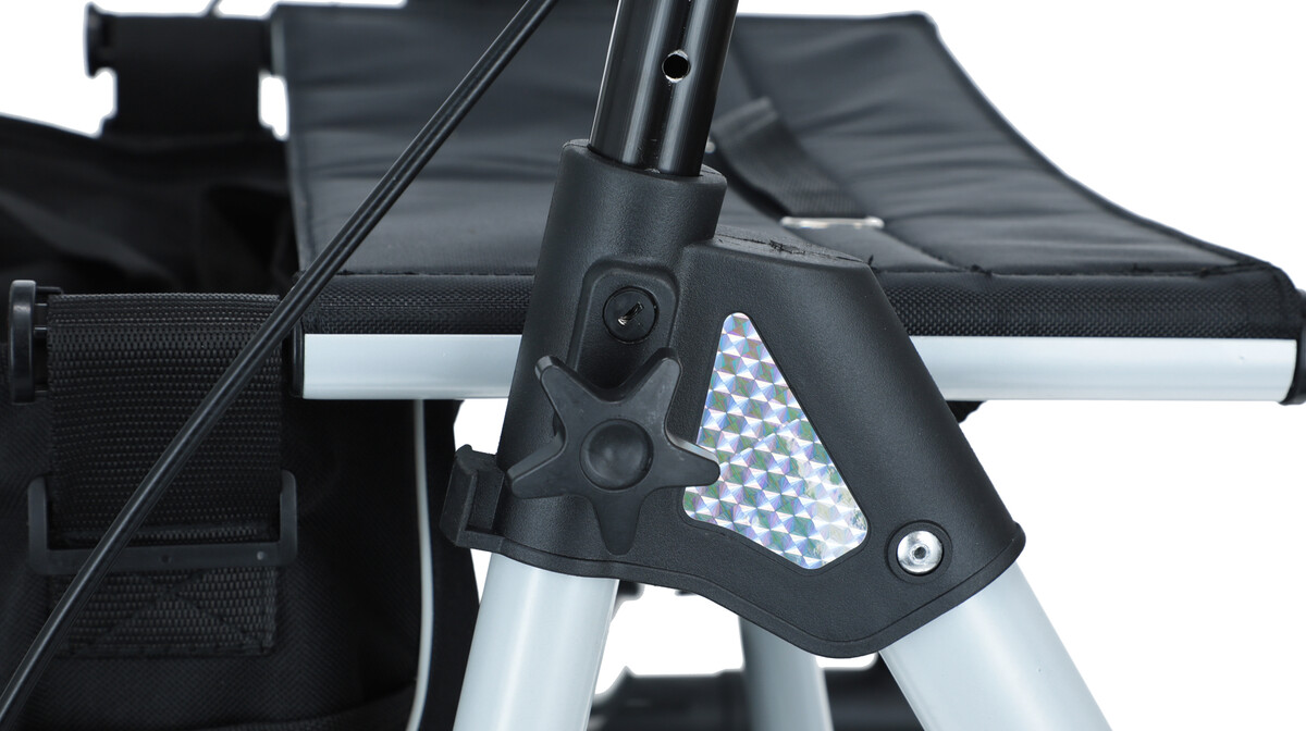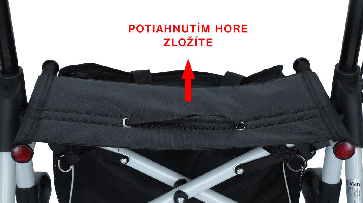 A textil ülés alatt egy praktikus táska található apróbb bevásárlásokhoz, a szerkezet oldalán pedig egy bot- vagy mankótartó található.