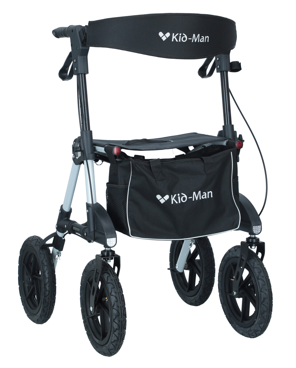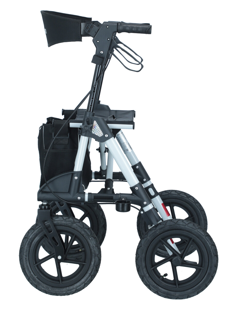 Ennek a négykerekűnek az előnye a könnyű, strapabíró alumínium konstrukció, a 135 kg-ig terjedő teherbírása és a felfújható abroncsok, amelyek a hétköznapi rollátorok felszerelésében nem találhatóak meg. A felfújható gumiabroncsok jól alkalmazkodnak sík és egyenetlen felületekhez egyaránt.