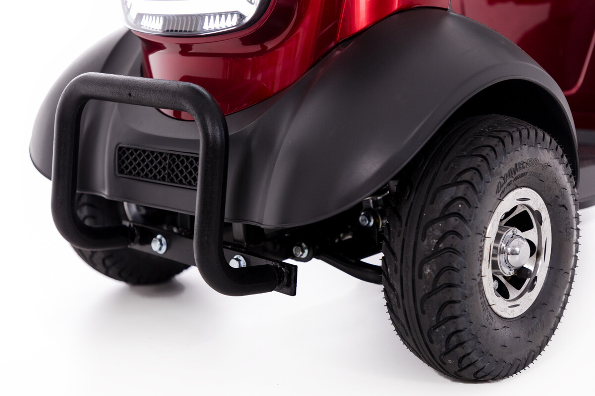 Végül, de nem utolsósorban, a robogó praktikus első és hátsó lökhárítóval is fel van szerelve, amely megvédi a robogó testét az esetleges ütésektől.