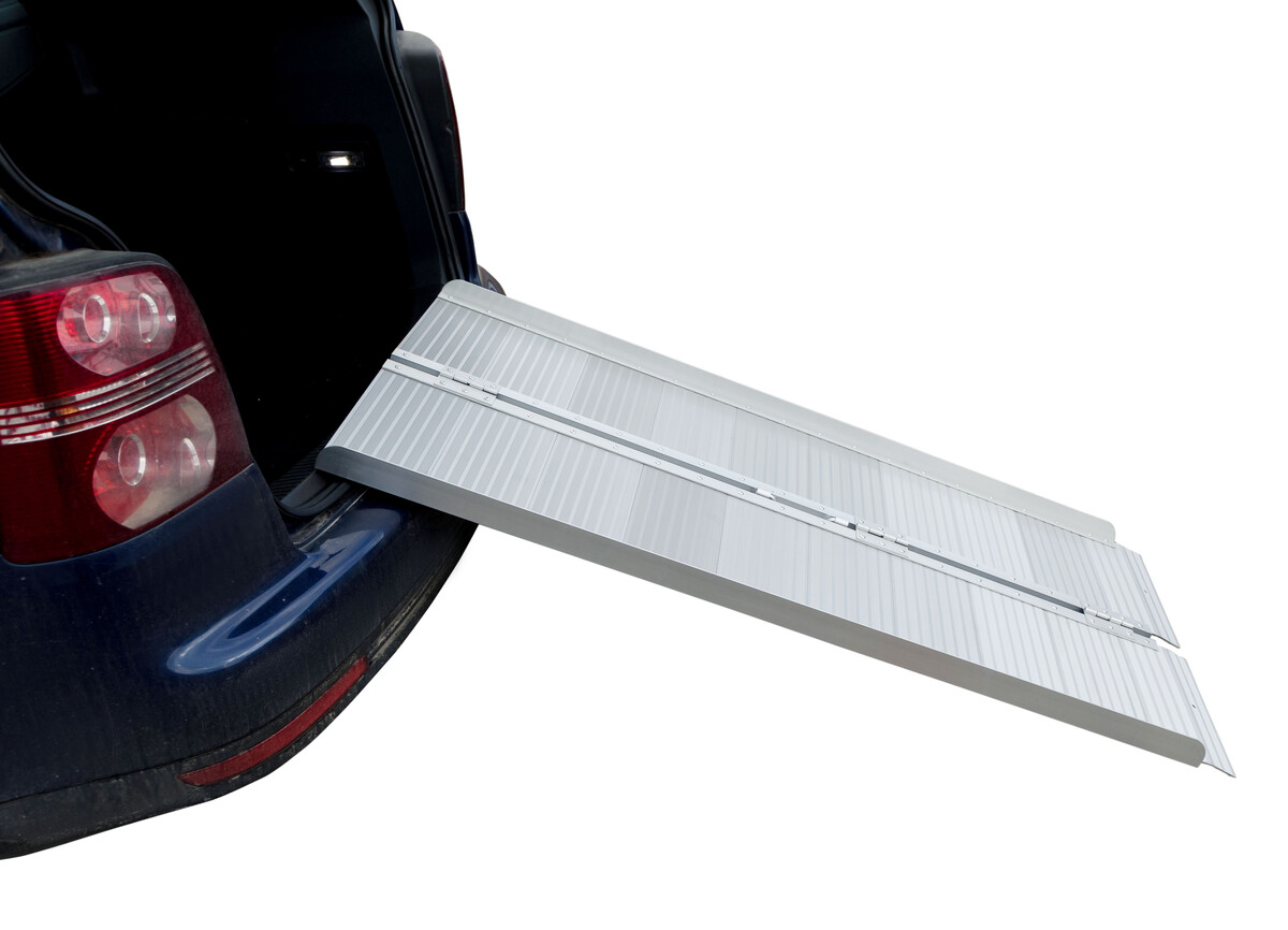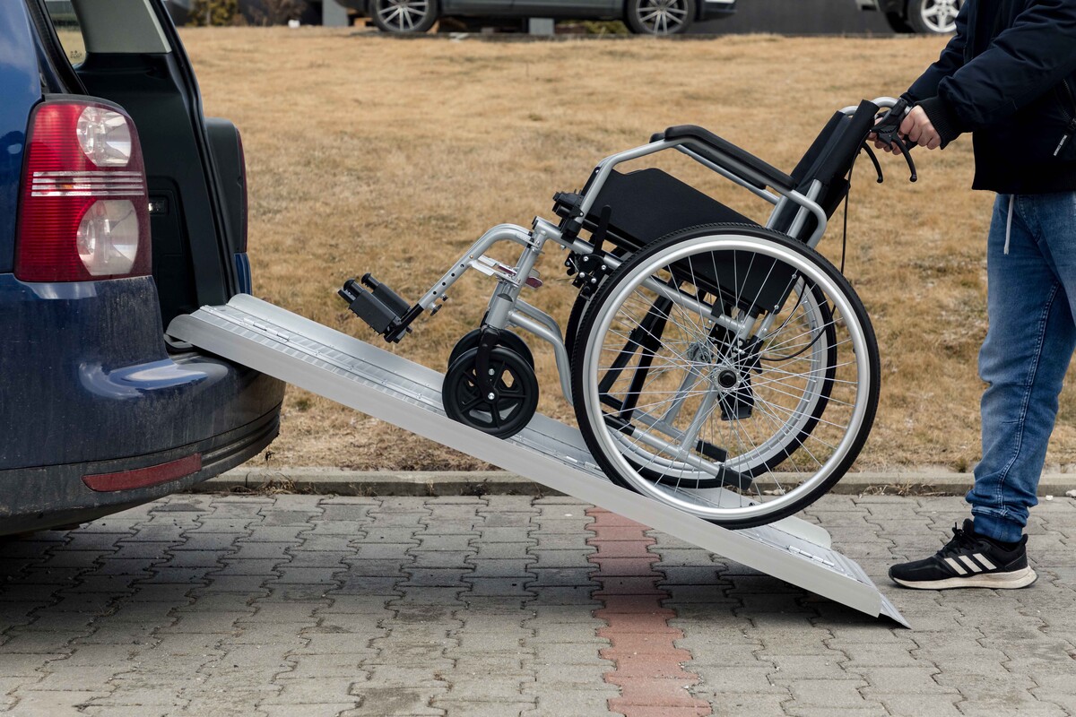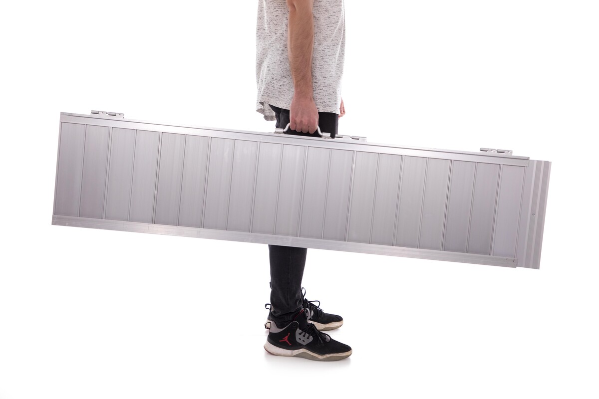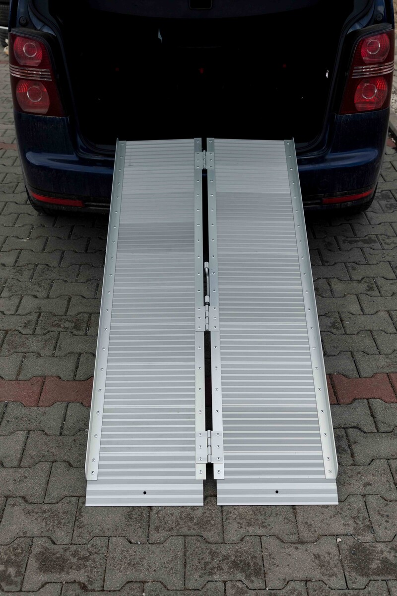 A hordozható rámpa segít leküzdeni az akadályokat, alkalmas kerekesszékek és egyéb eszközök be- és kirakodására.