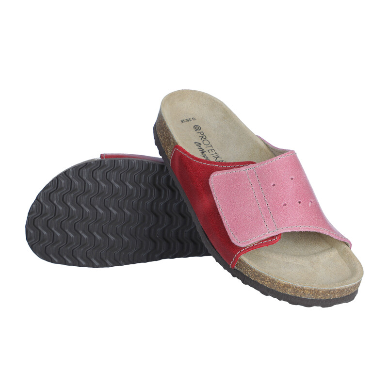Egészségügyi ortopéd papucs a keresztirányú és hosszirányú lábívek támasztásával.