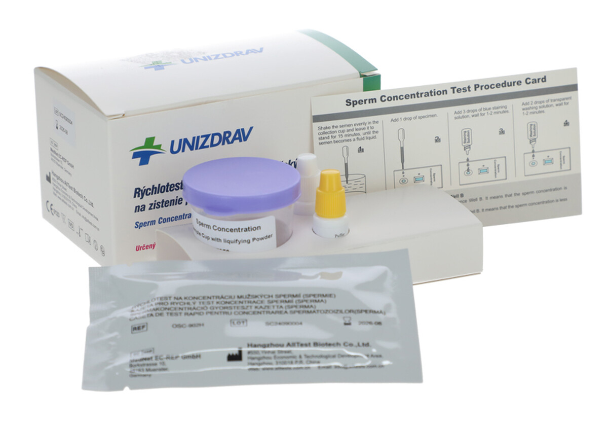 Könnyen használható önellenőrző tesztkészlet a férfi sperma spermaszámának meghatározásához otthona kényelmében. A teszt méri a spermiumkoncentrációt, és meg tudja állapítani, hogy az normális vagy alacsony. Az alacsony érték 15 millió/ml alatt van. A teszt 97,98%-os pozitív egyezési arányt ér el a klinikai vizsgálatok során.