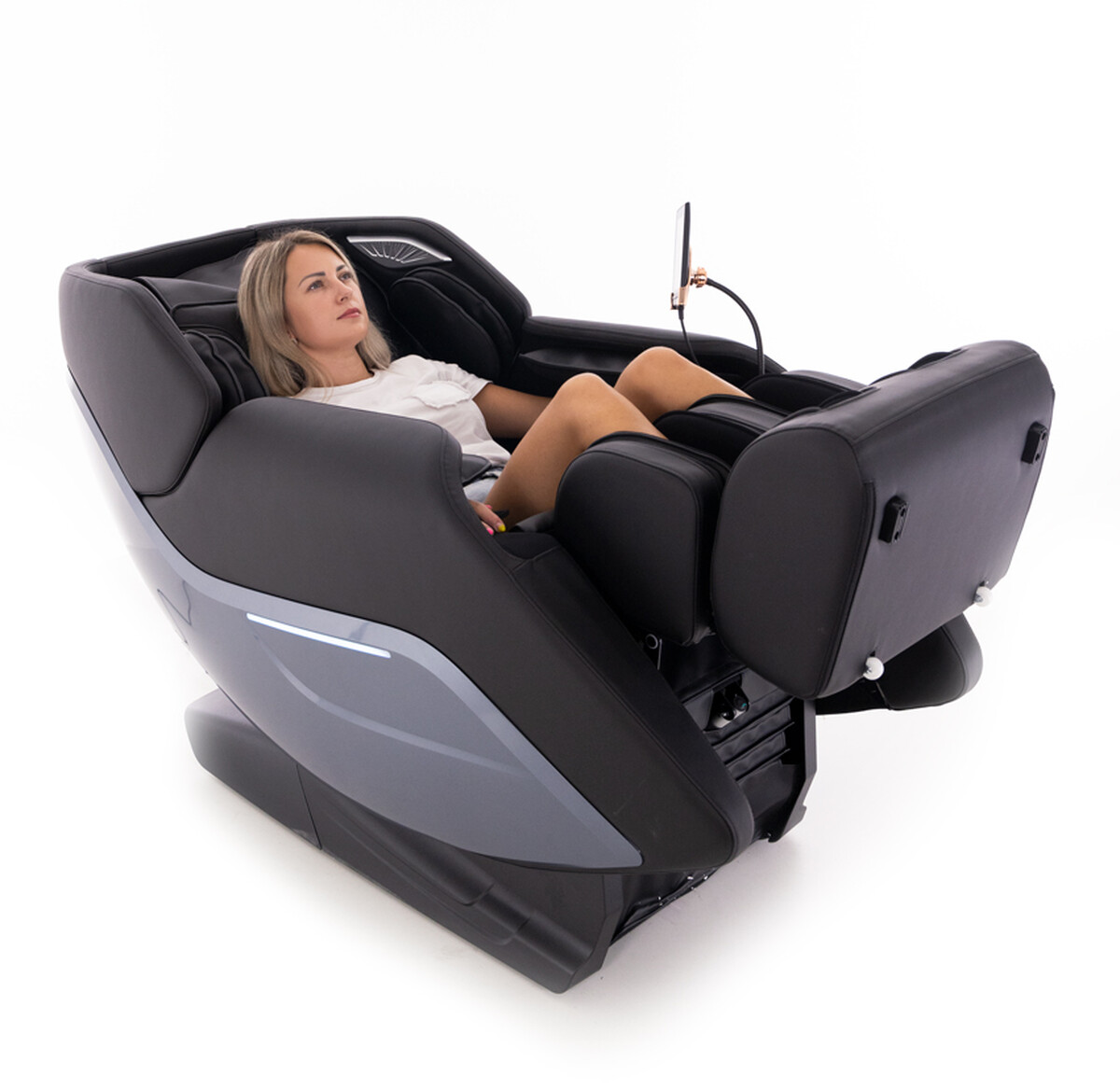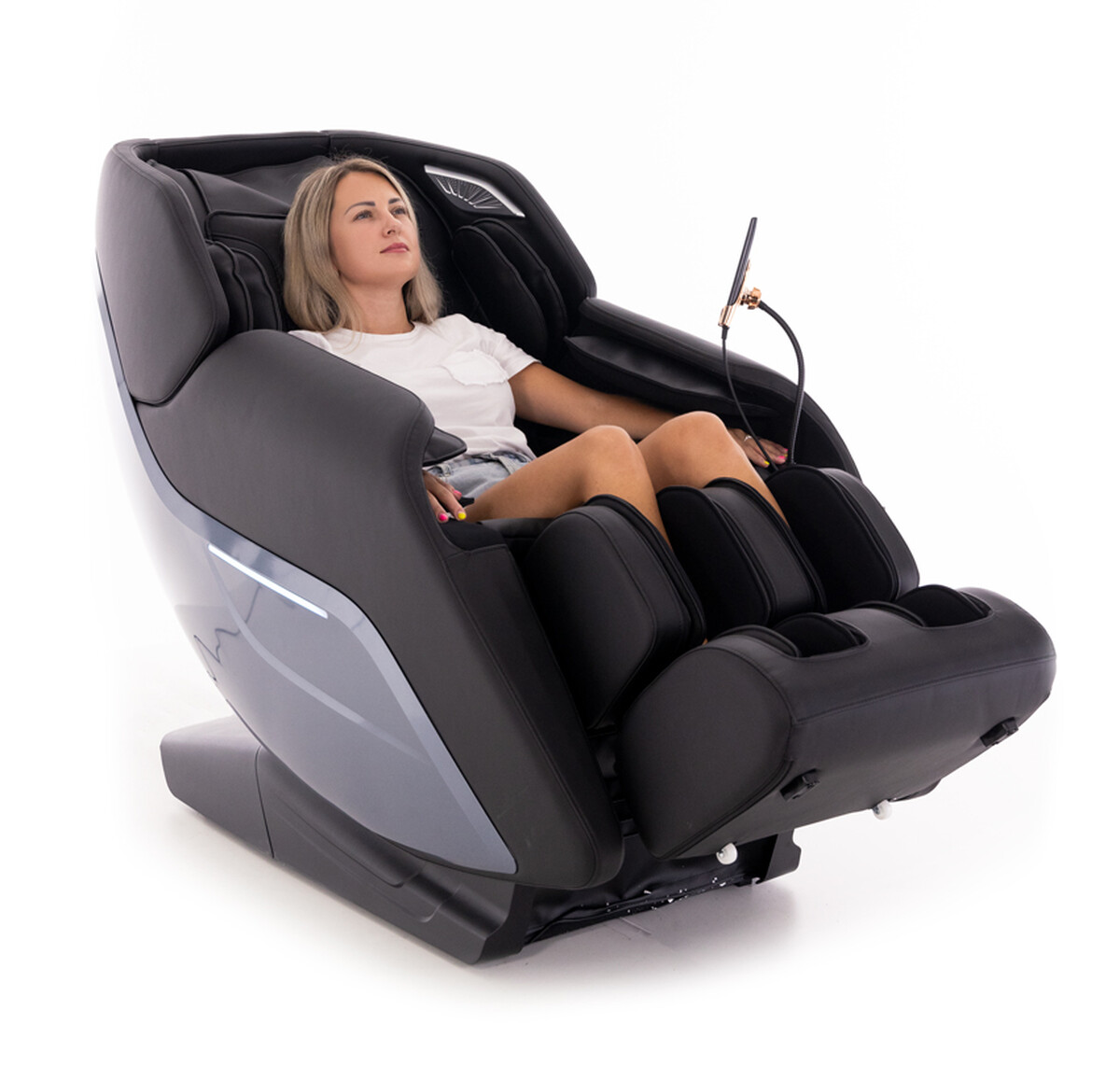 Ötletes kialakítású masszázsfotel a legújabb intelligens technológiákkal, számos masszázsprogrammal és technikával. Beszerelés az árban.