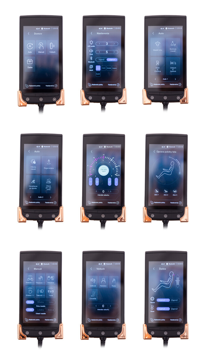 A manuális vezérlés esetében lehetőség van három különböző fejméret beállítására, a masszírozandó testrész kiválasztására és akár hatféle masszázstípus közül választani: gyúró, kopogtató, Shiatsu és ökölmasszázs 2 különböző intenzitásban, valamint a simogató masszázs vagy a Tui Na masszázs. Kiválaszthatja a masszázsfej sebességét és beállíthatja az időzítőt is.
